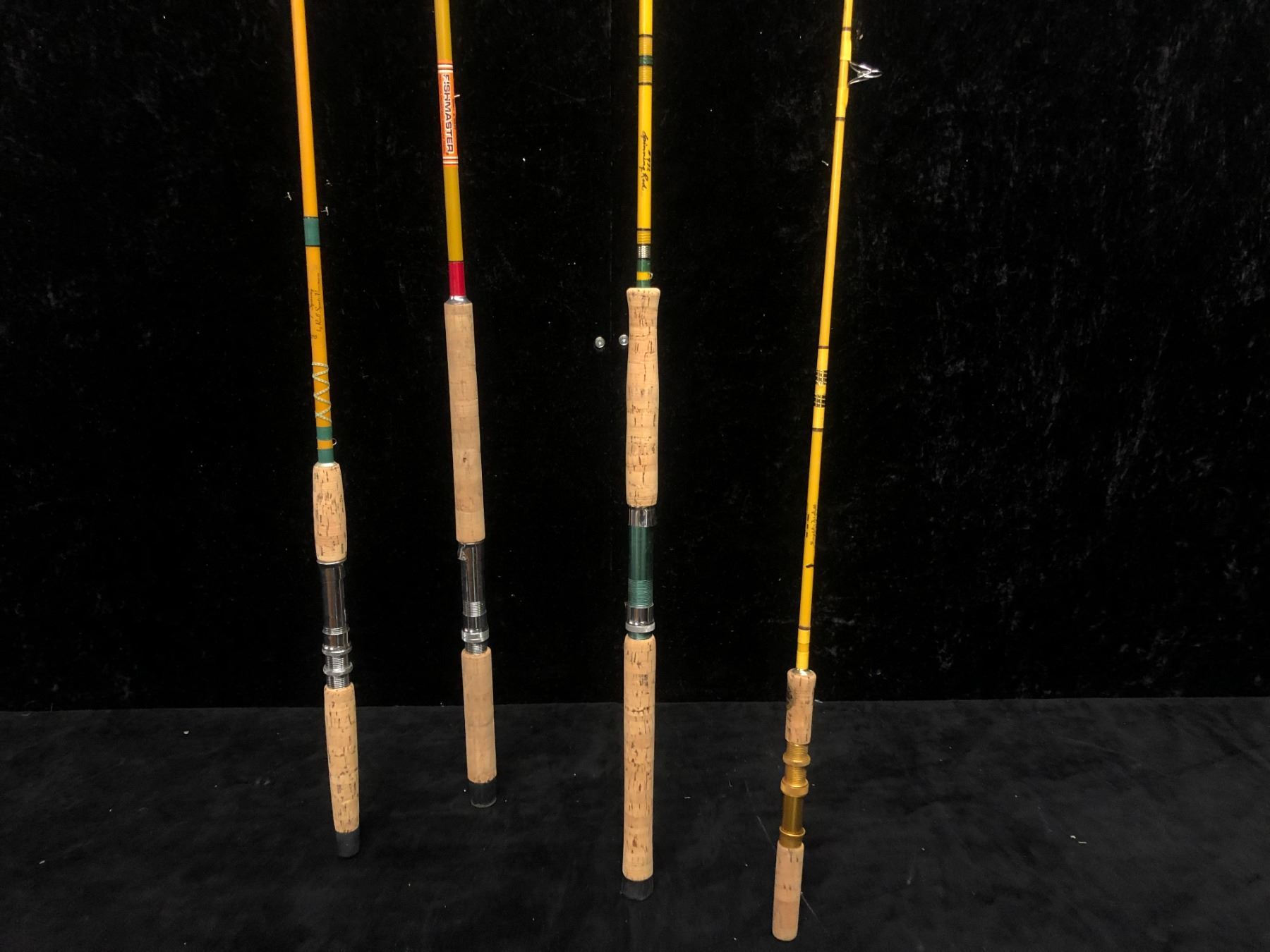 Group of 4 assorted rods - good usable rods (wood stand not included)