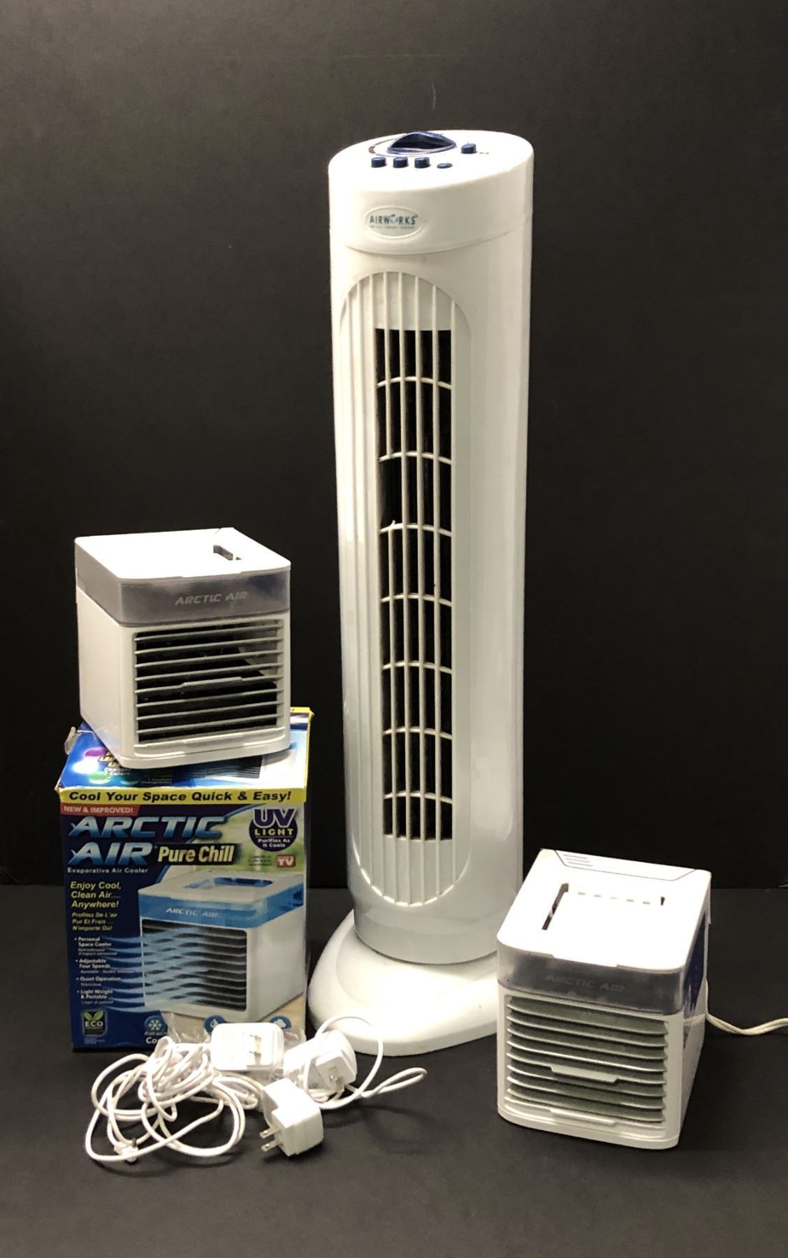 Group of 4 fans - includes 3 artic air pure chill evaporative air coolers & Airworks tower fan - no. F-7325