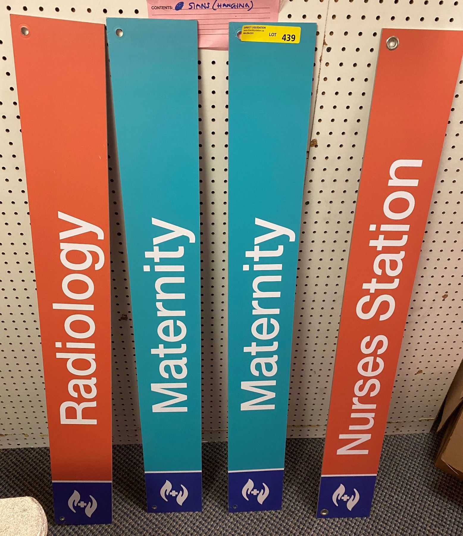 Group of 4 hospital hanging signs - 6in x 46in each - 2 Maternity signs/ 1 Radiology & 1 Nurses Stat