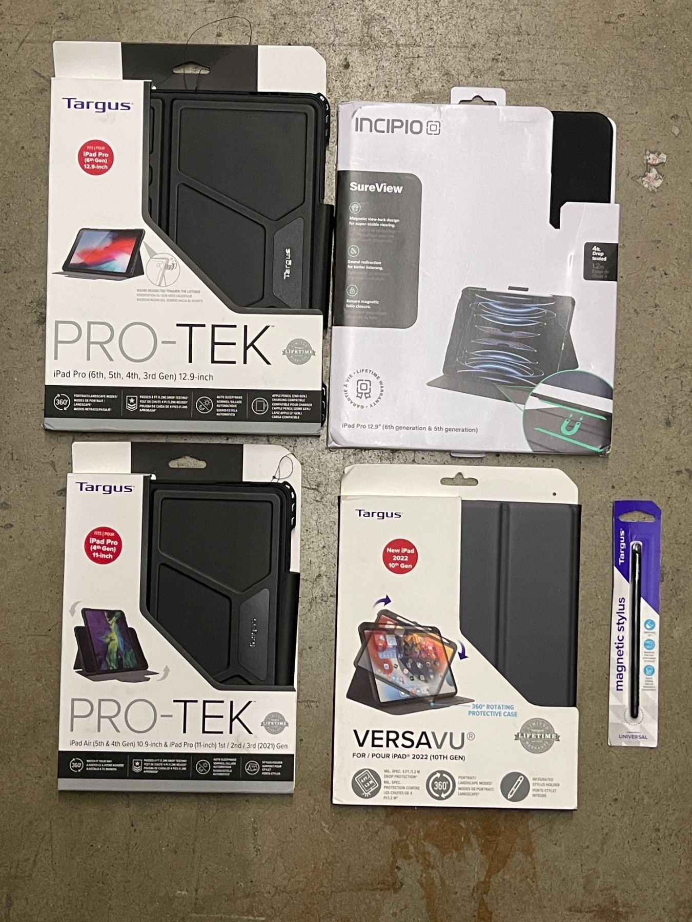 Group of 4 new assorted Targus & Incipio iPad cases & Targus magnetic stylus
