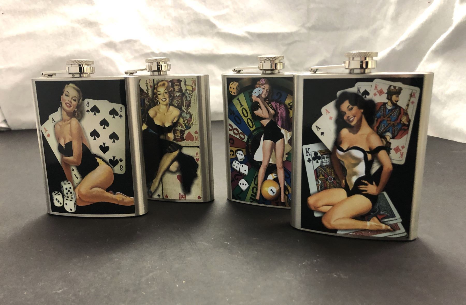 Group of 4 stainless steel 8 oz - liquor drinking bottles