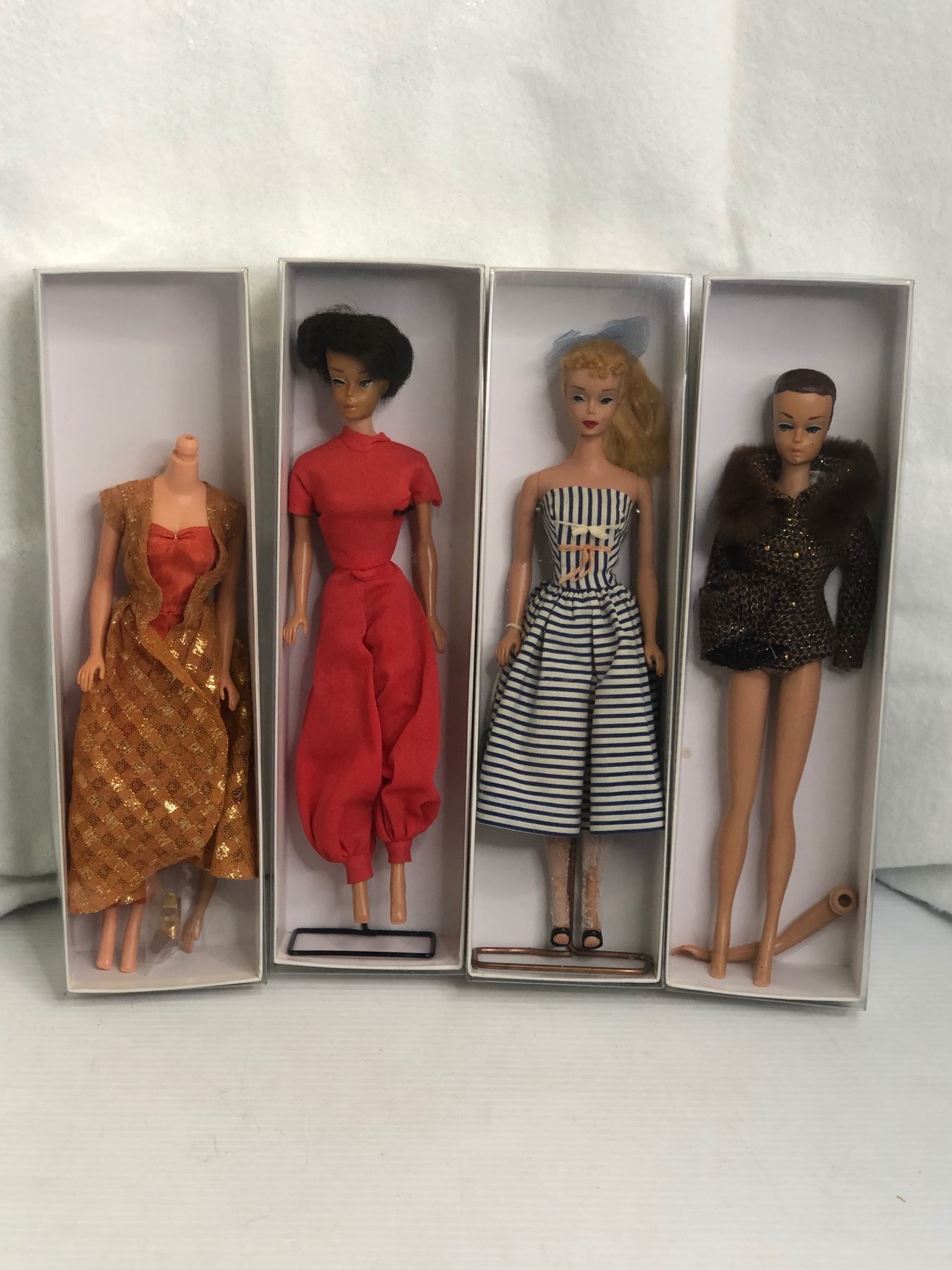 Group of 4 vintage Barbie dolls - includes Barbie in sundress (1 Barbie missing head)