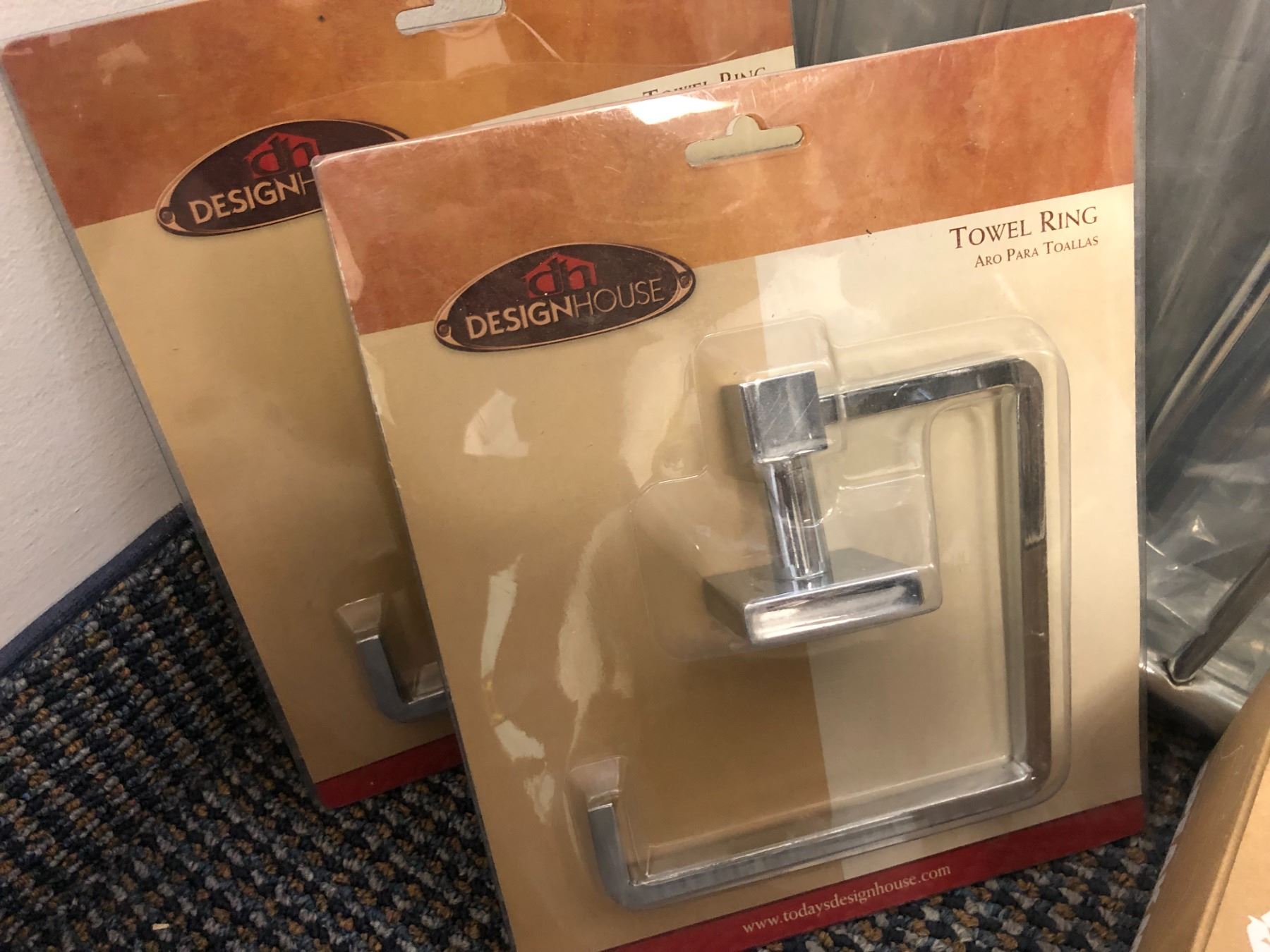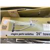 Group of 5 Taymor 24in towel shelf w/ bar/ 2 towel rings & Speakman showerhead