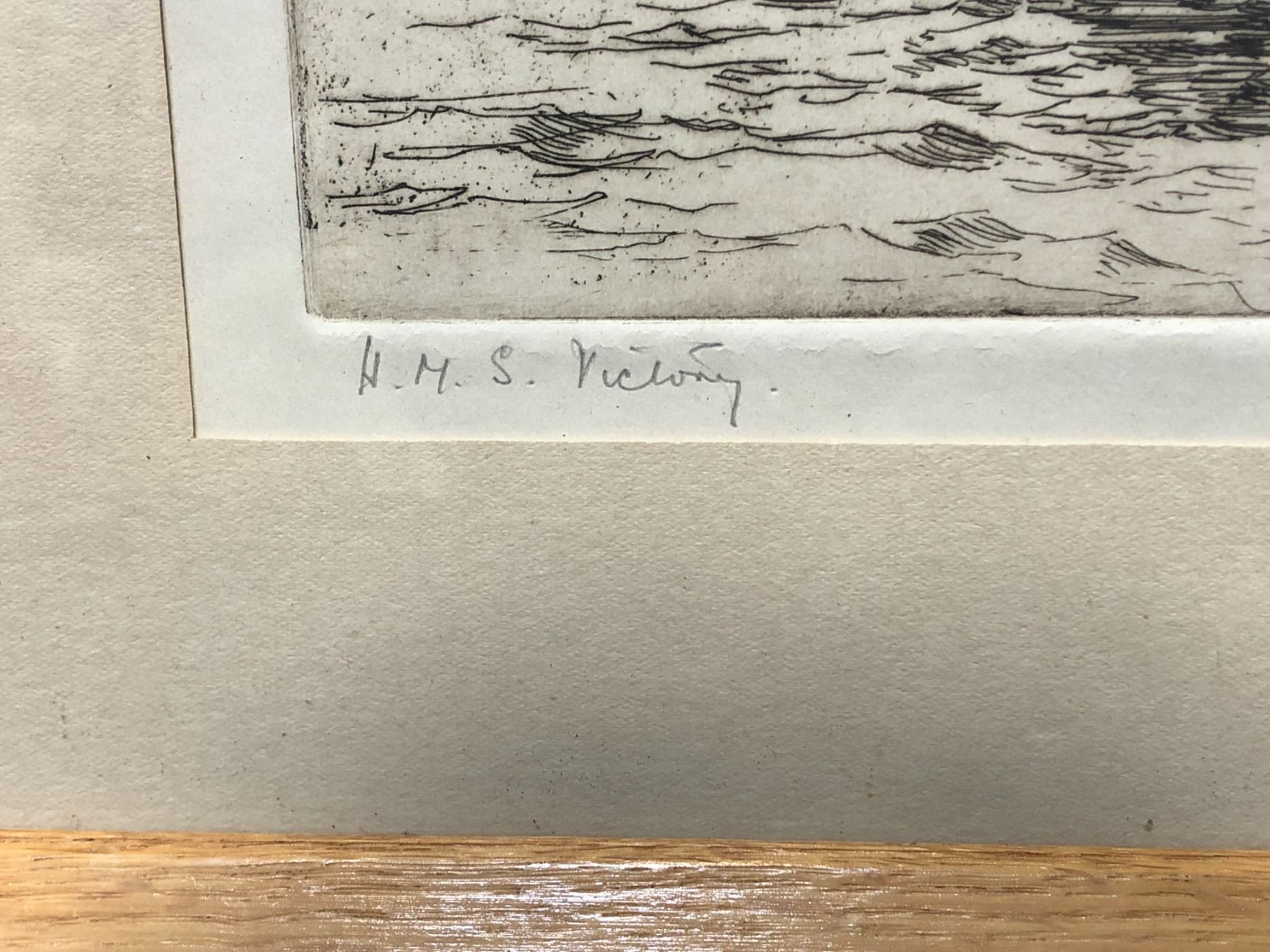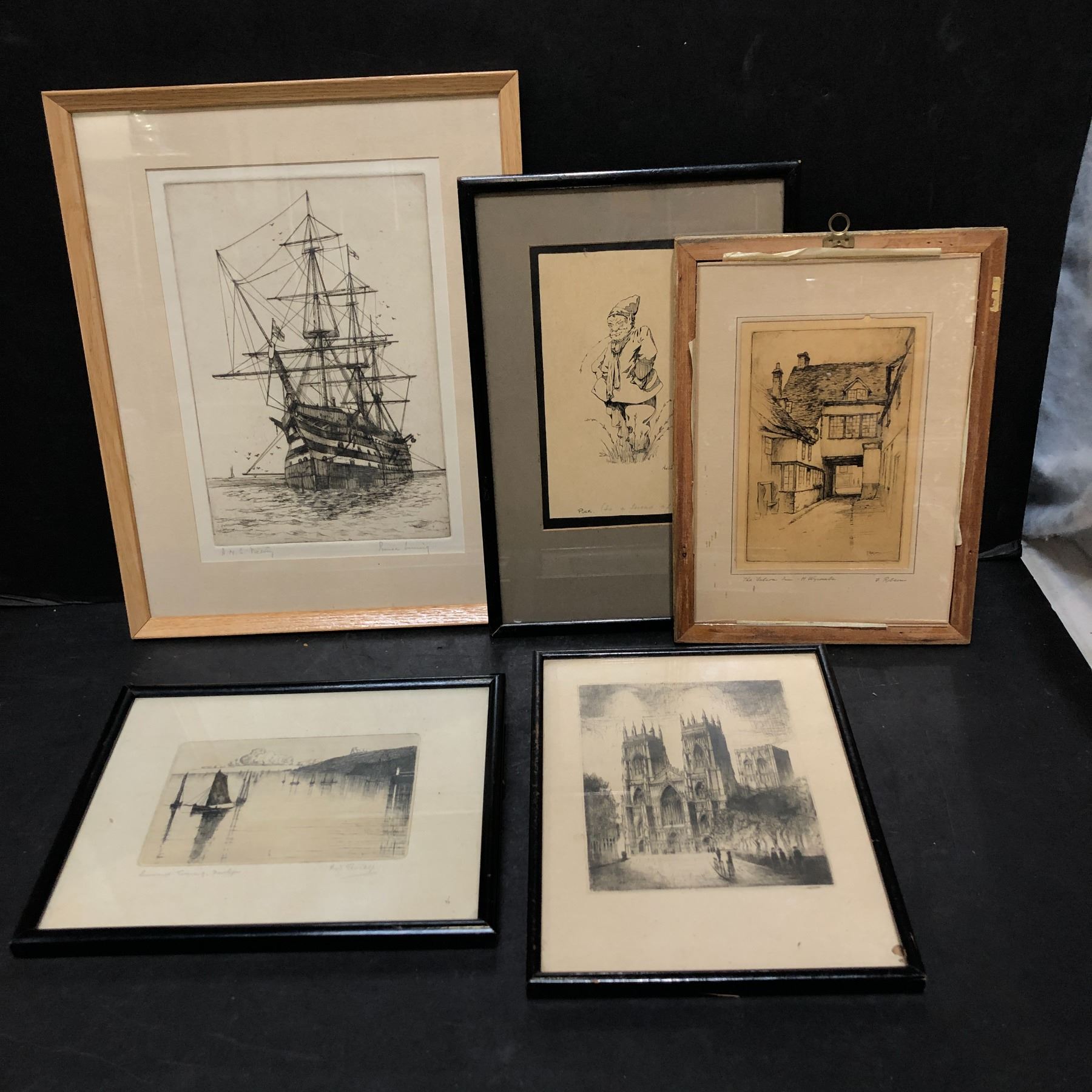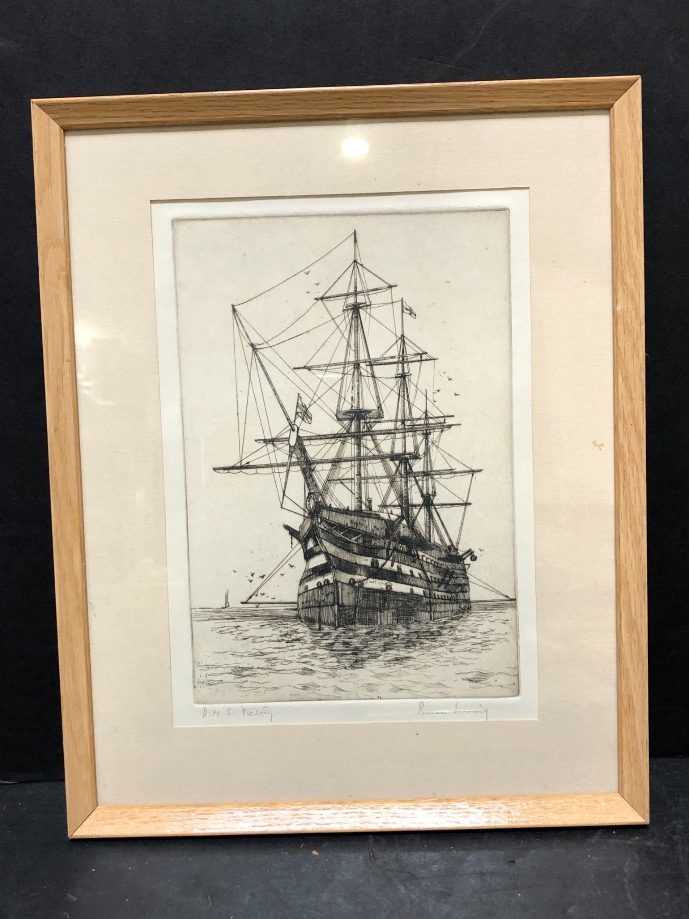 Group of 5 assorted framed paintings - includes H.M.S victory ship painting (approx 12" x 15")