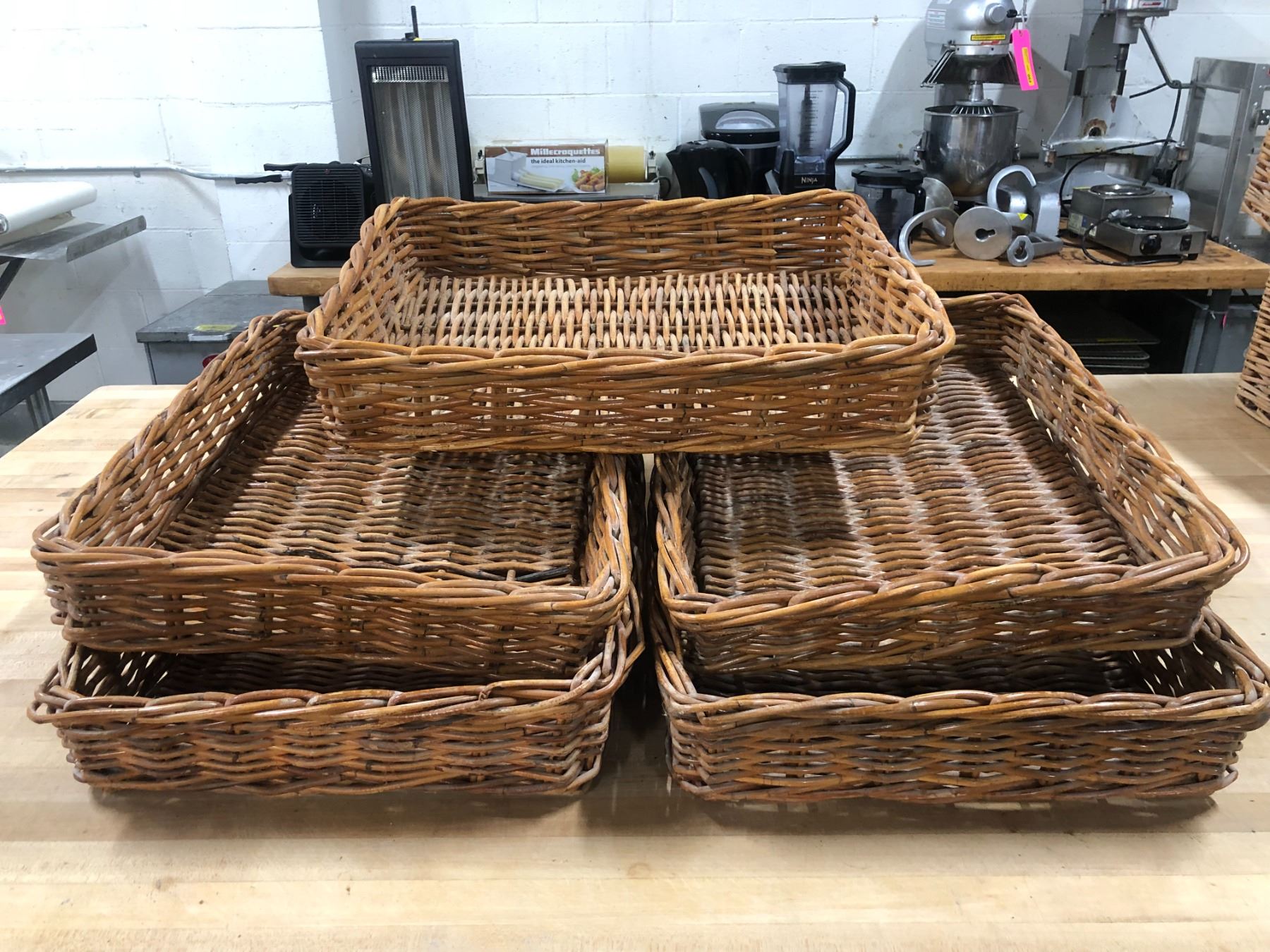 Group of 5 wicker product display baskets