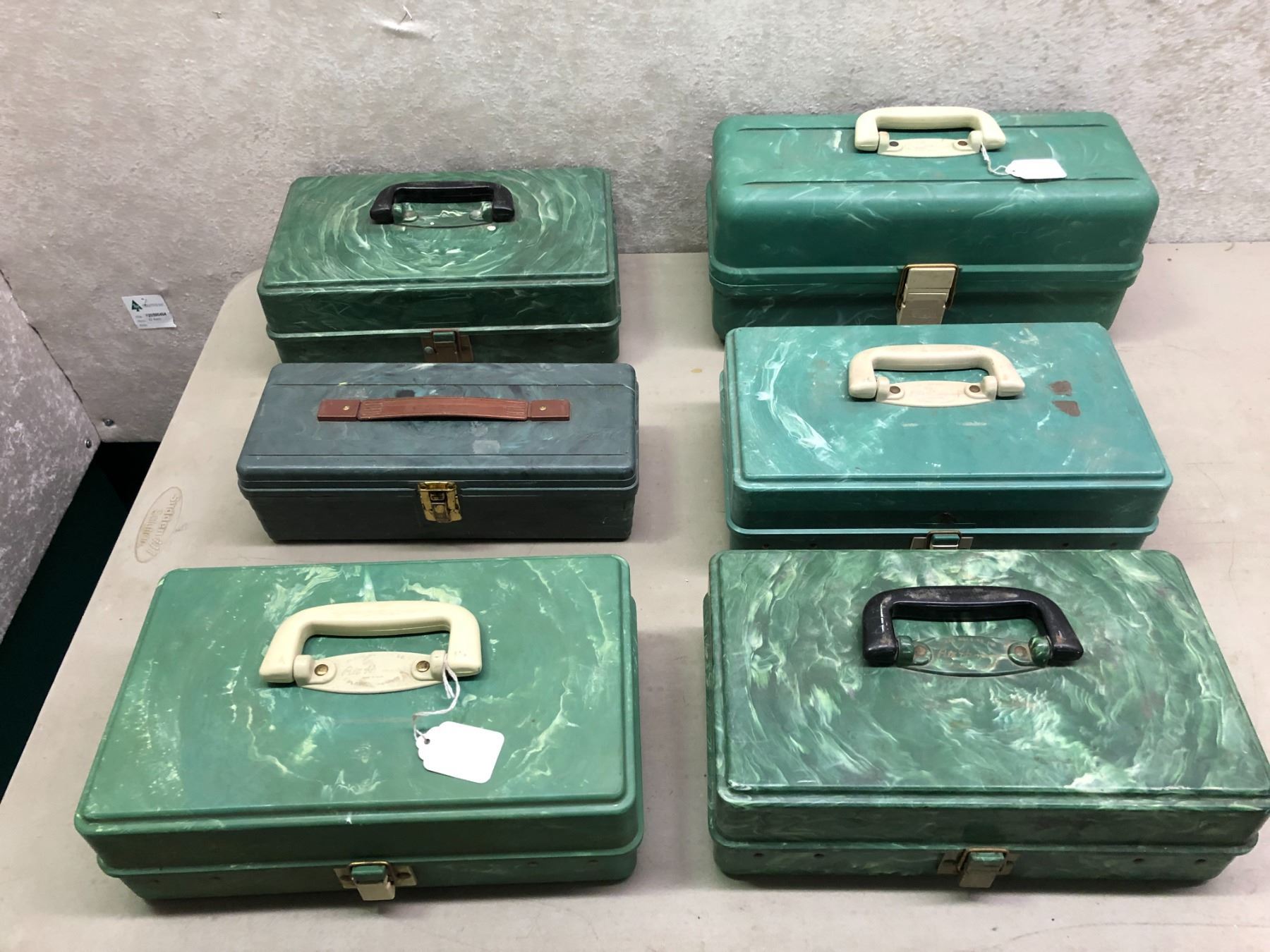 Group of 6 1950's fisherman's tackle boxes