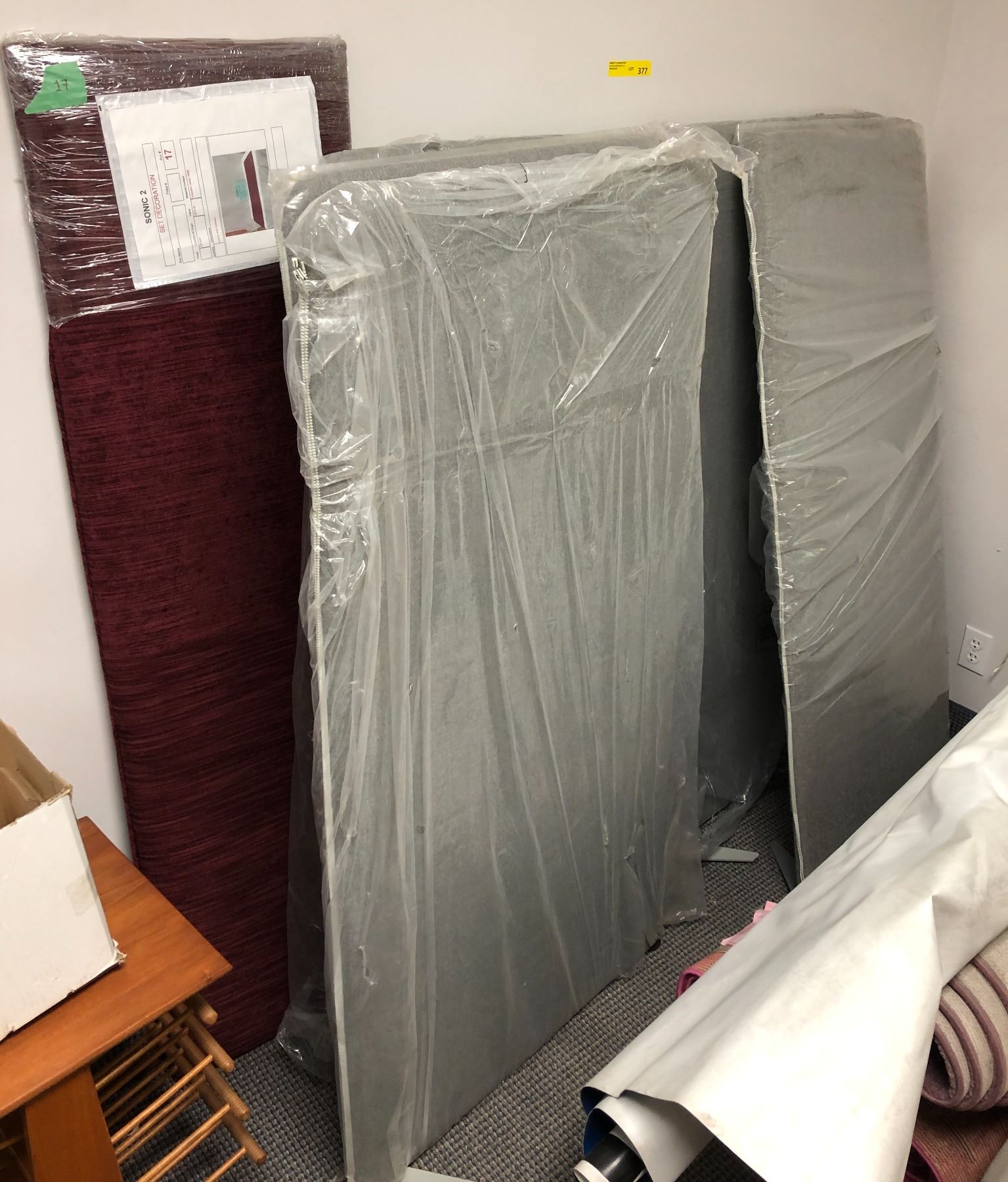 Group of 6 - 5 custom made seat cushion or headboards? (approx 30" x 5ft) & burgundy custom seat cushion (approx 18" x 65 1/2")