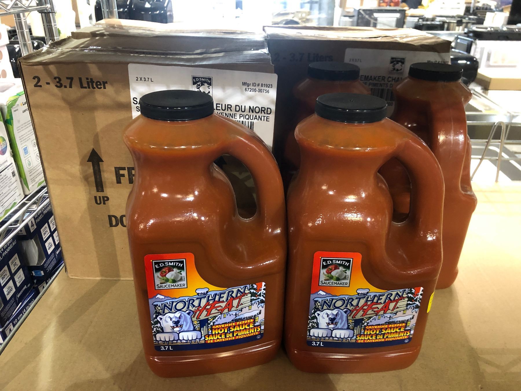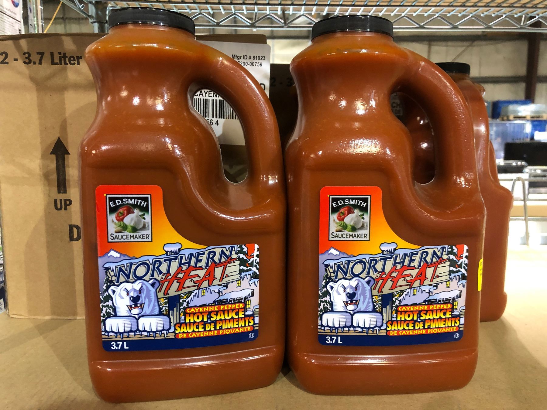 Group of 6 Boxes of  E.D. Smith Northern Heat Hot Sauce, 3.7L - 2 bottles/box
