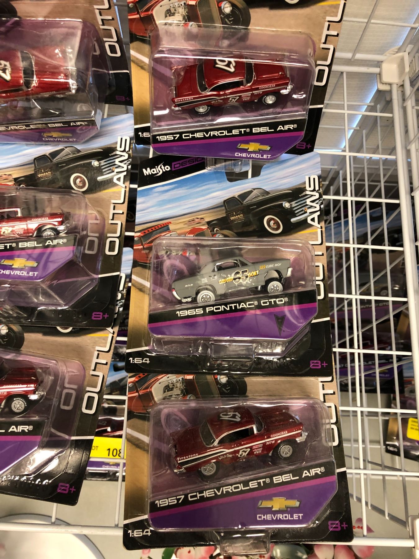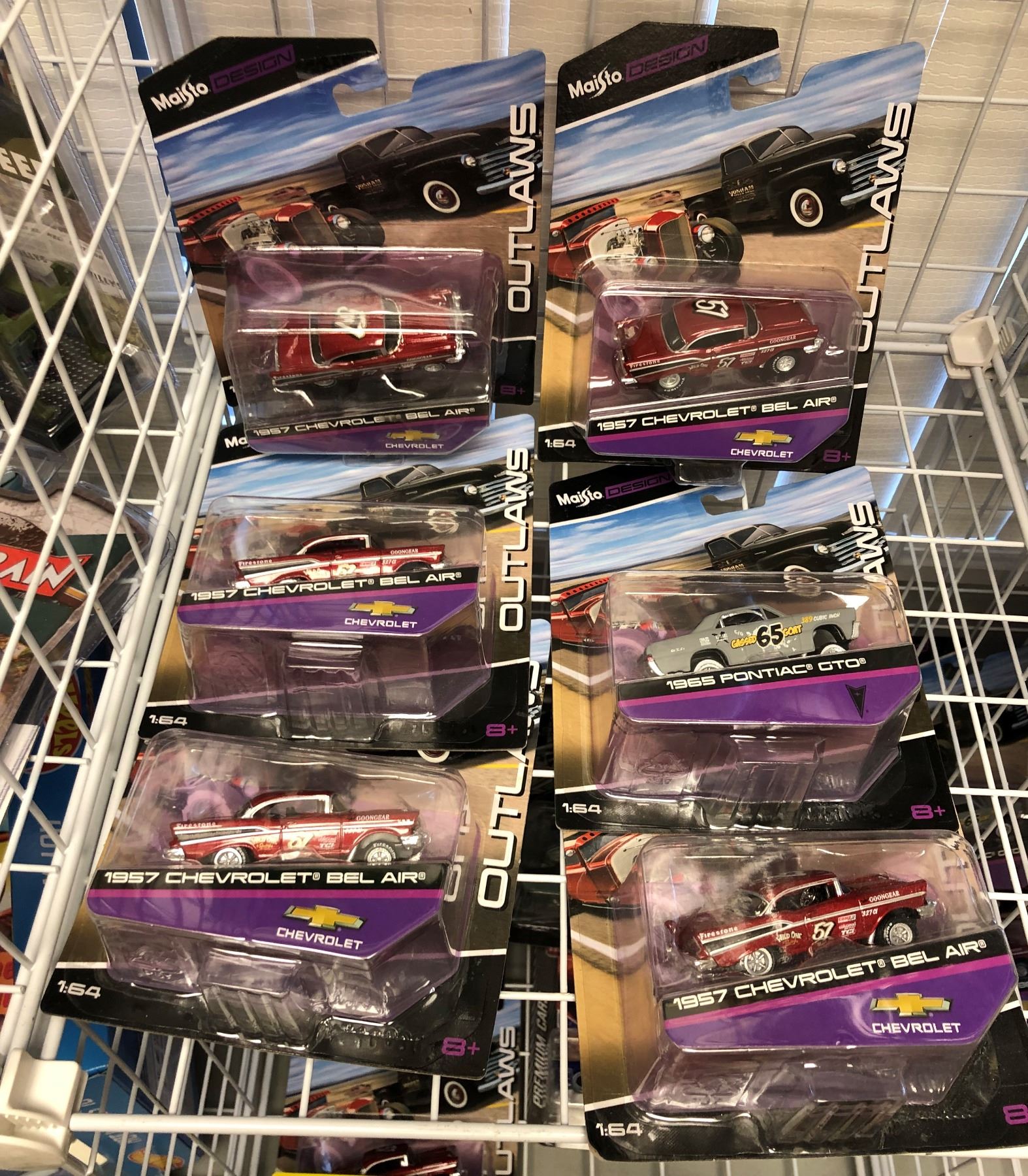 Group of 6 Maisto Outlaws model toy cars - 1957 Chevrolet Bel Air/ 1965 Pontiac GTO etc.