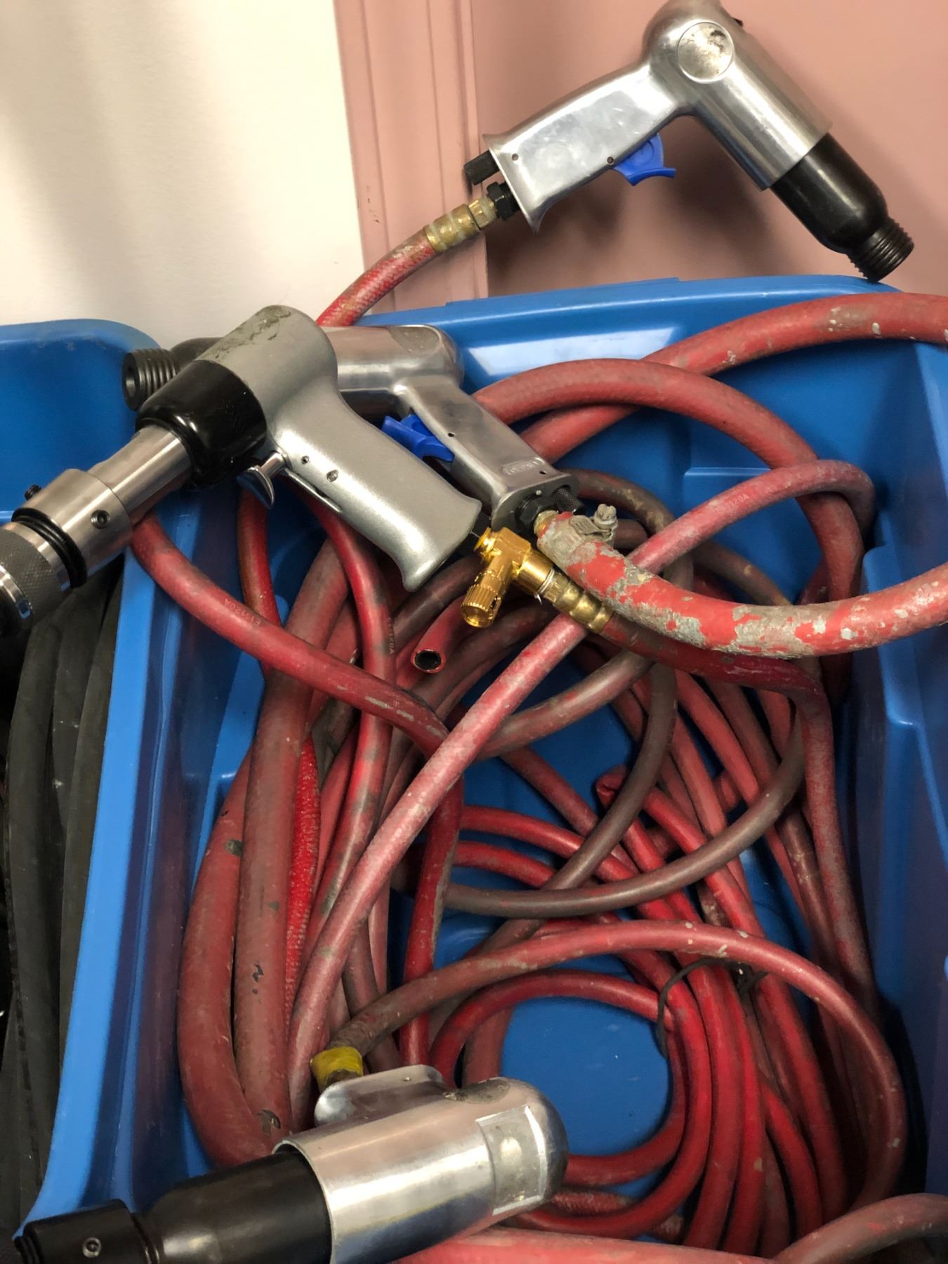 Group of 6 air hammers & red airline hose (From the superhero show)