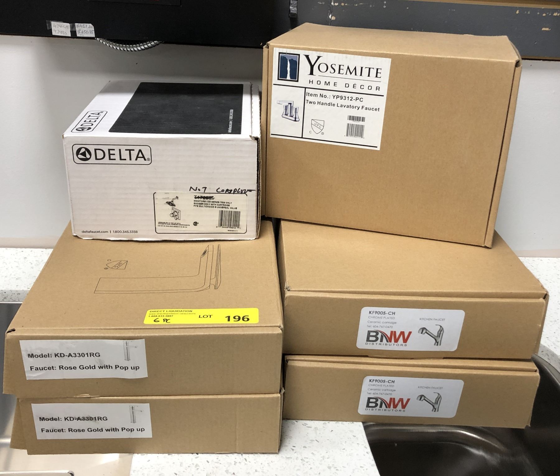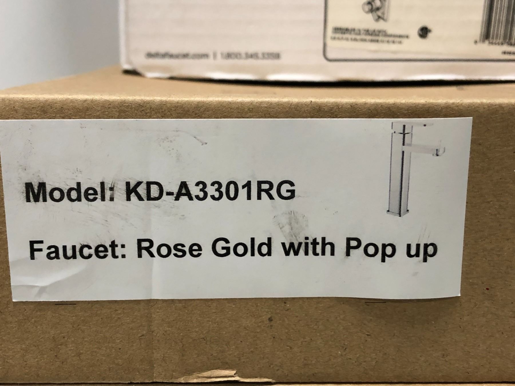 Group of 6 assorted faucets w/pop ups includes - rose gold, chrome plated, etc...