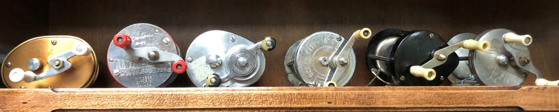 Group of 6 assorted vintage bait cast fishing reels