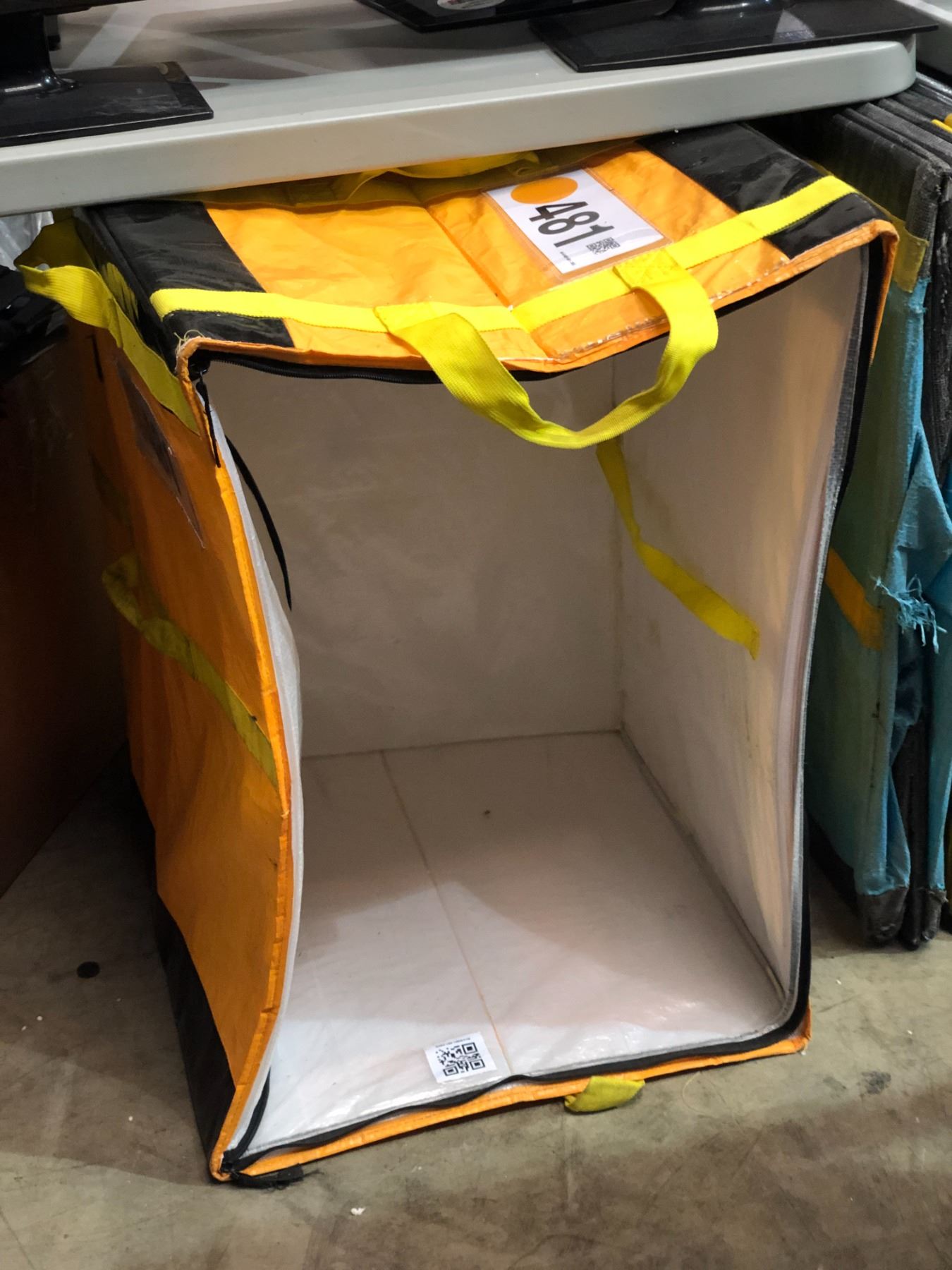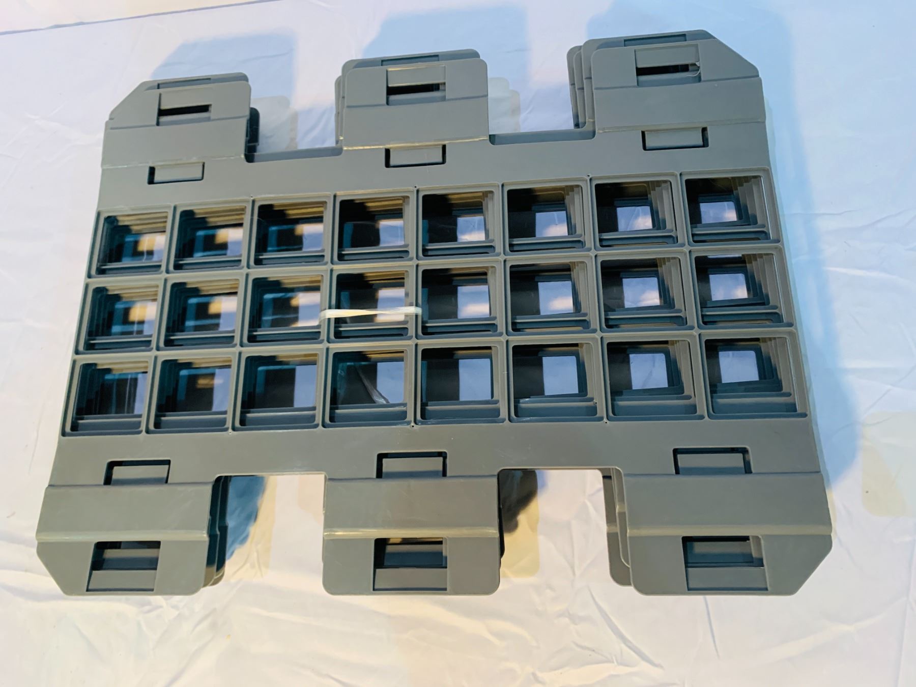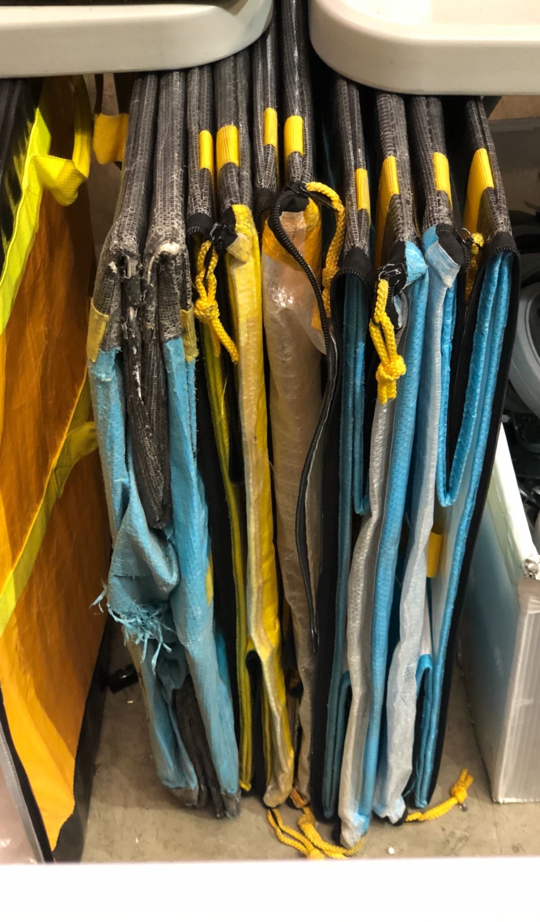 Group of 6 sorting bags w/ box of plastic attachments (approx 19in x 27in x 23in)