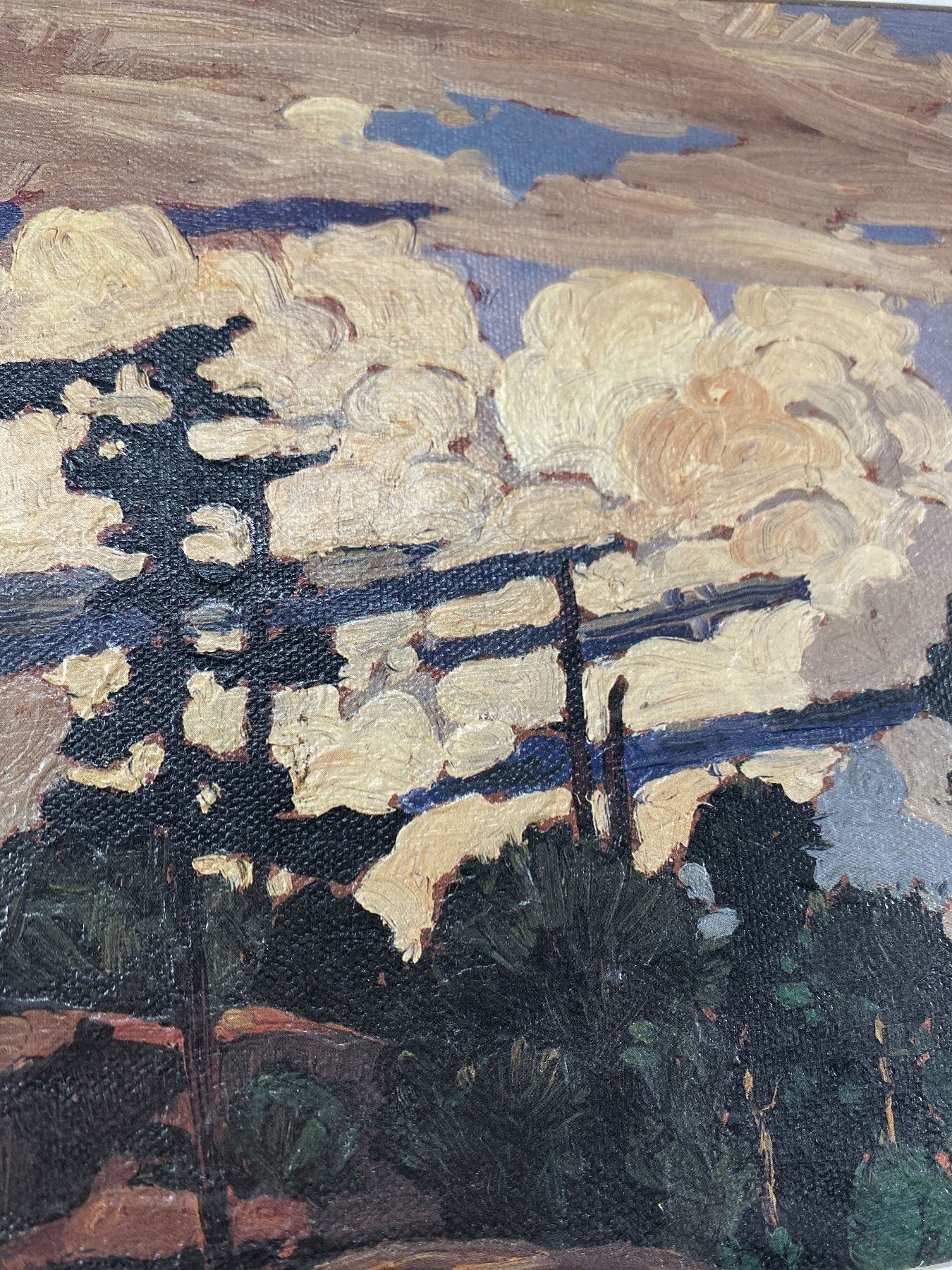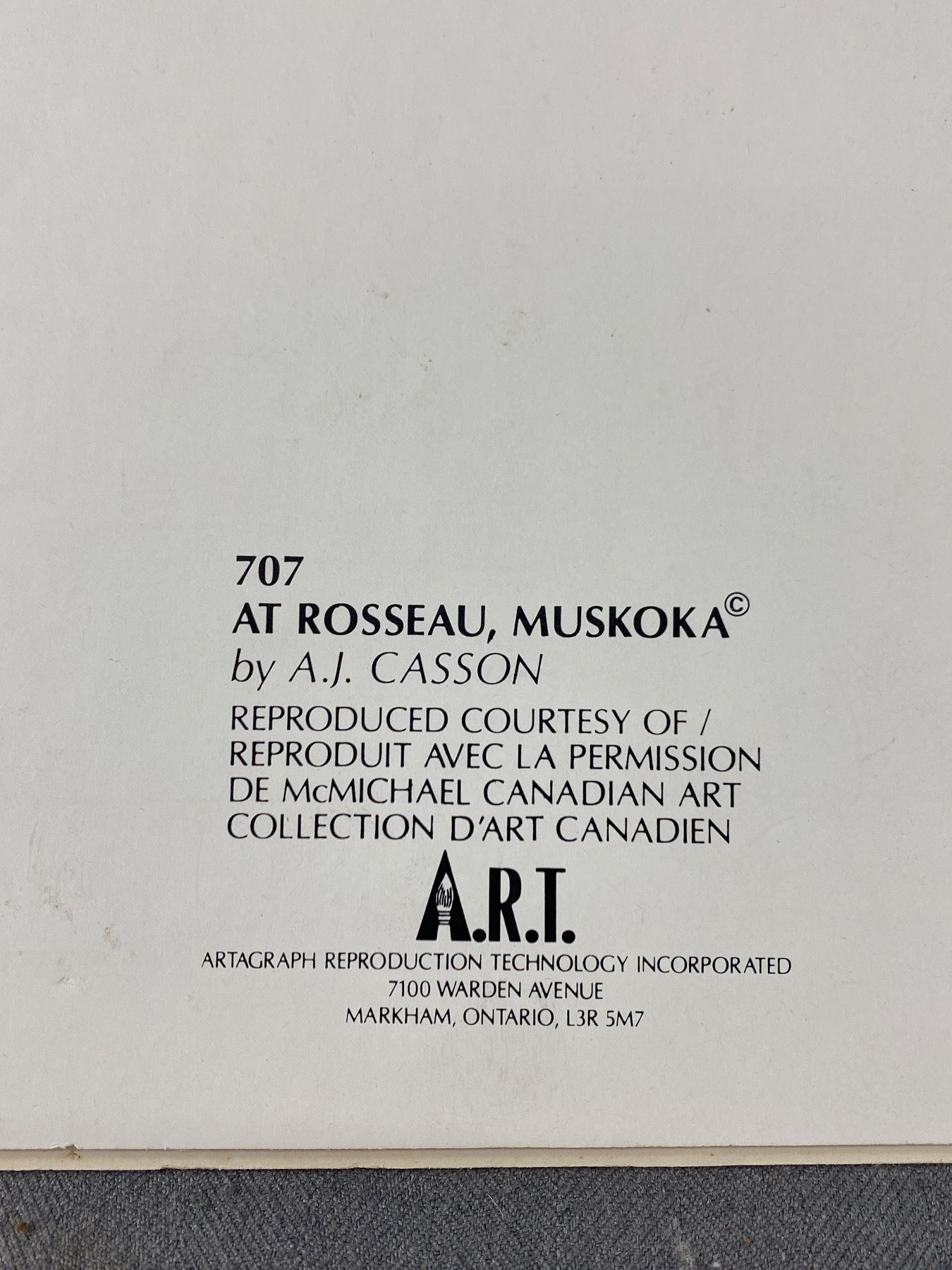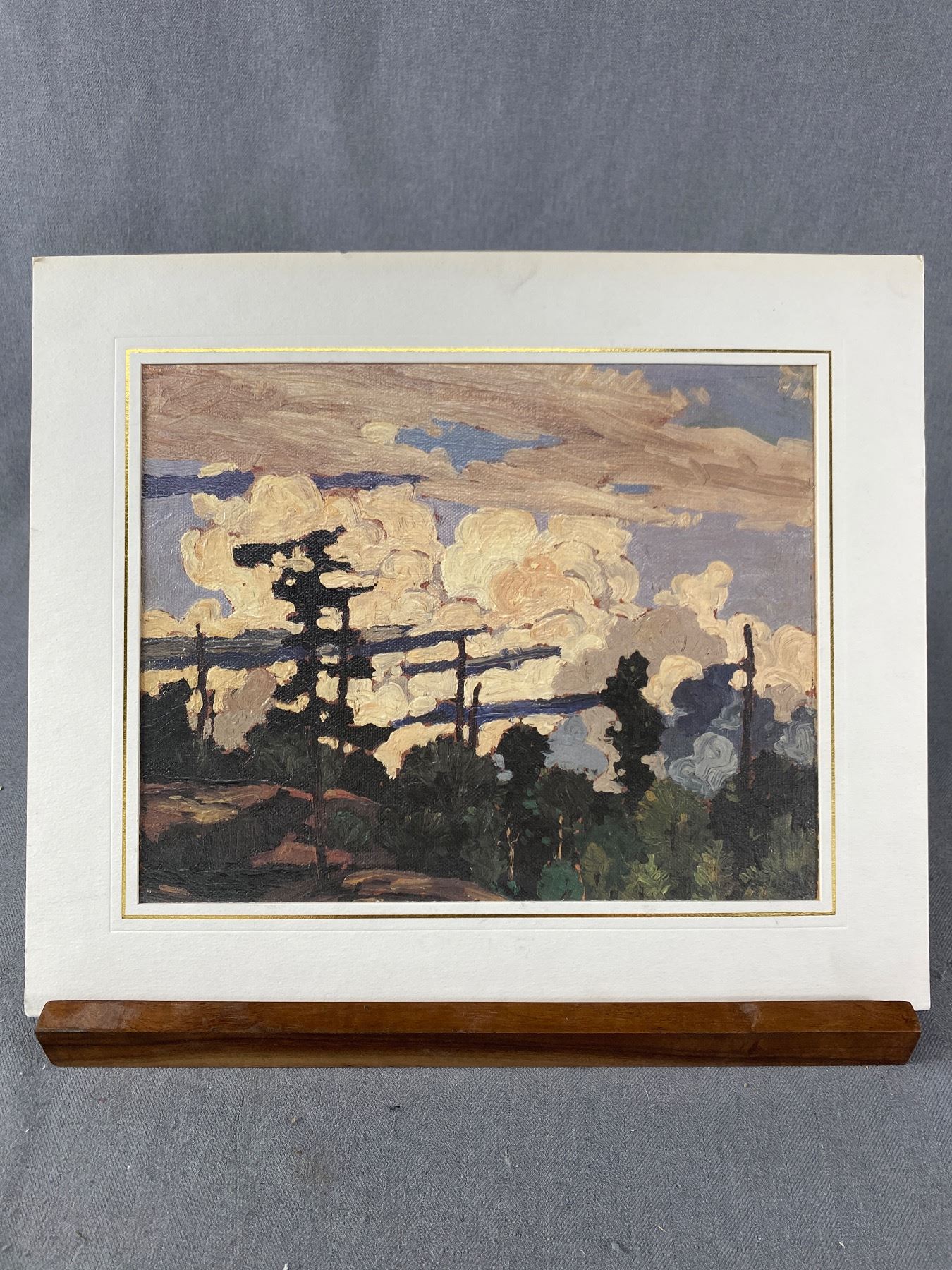 Group of 7 A.J. Casson Art Print Matted, With a Mid Century Modern Teak Wooden Book/Art Stand
