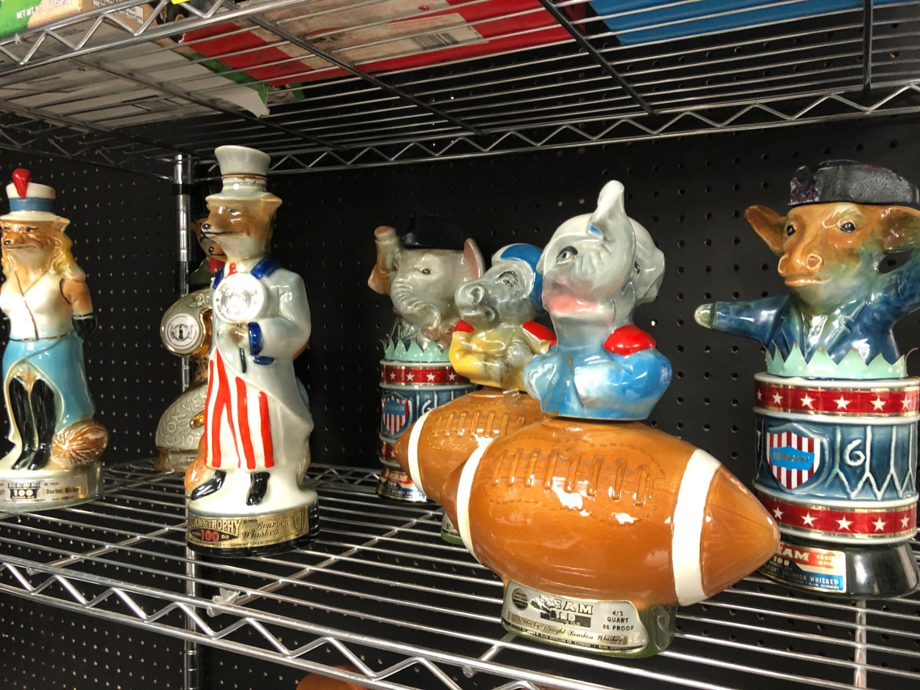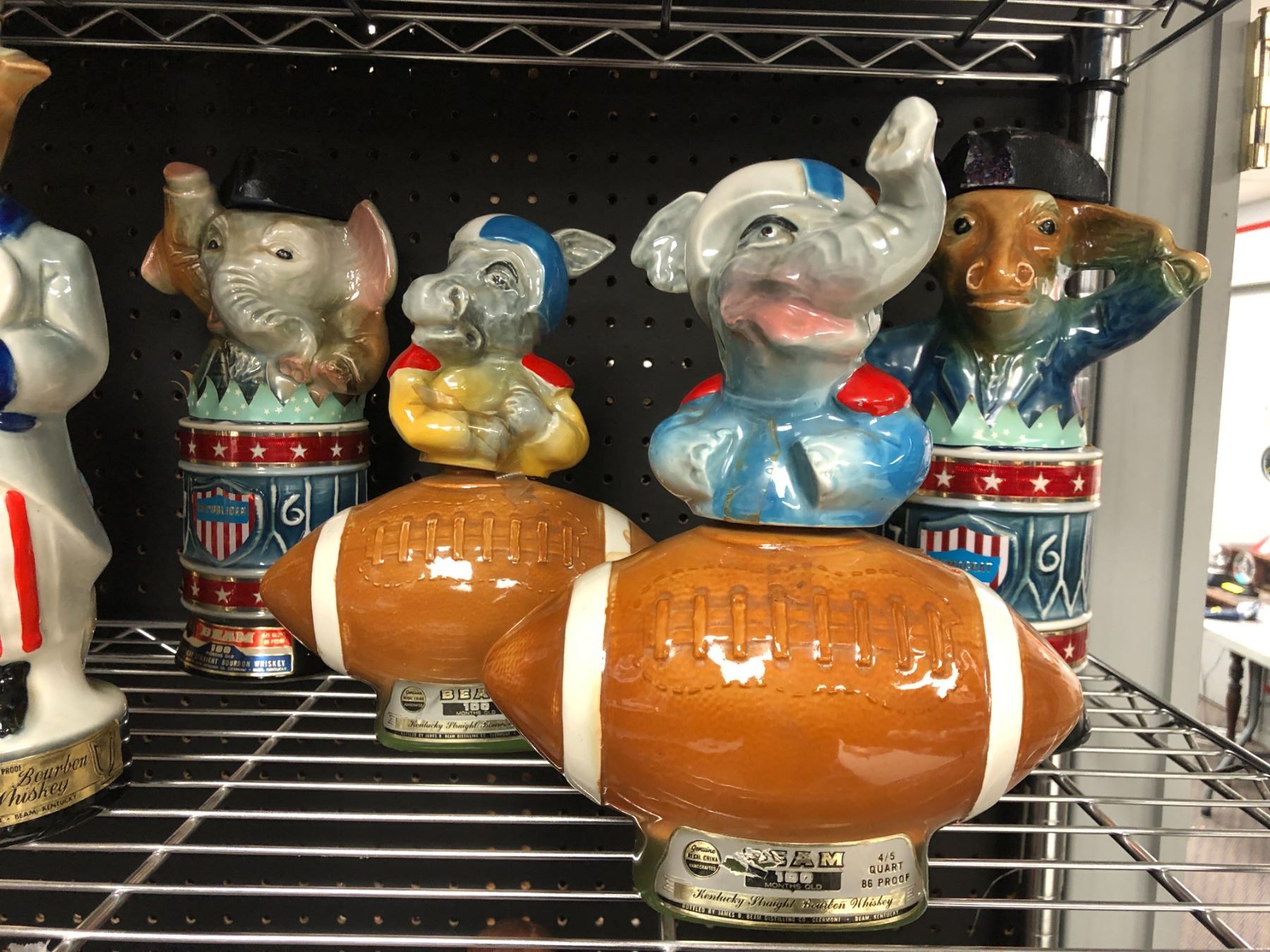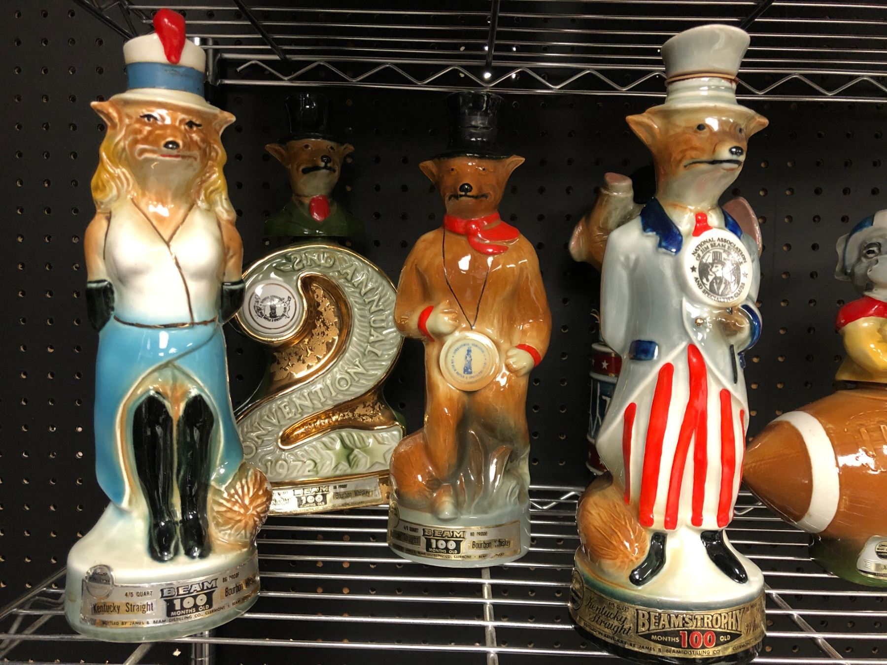 Group of 8 collectible Beam porcelain vintage liquor decanters (empty)