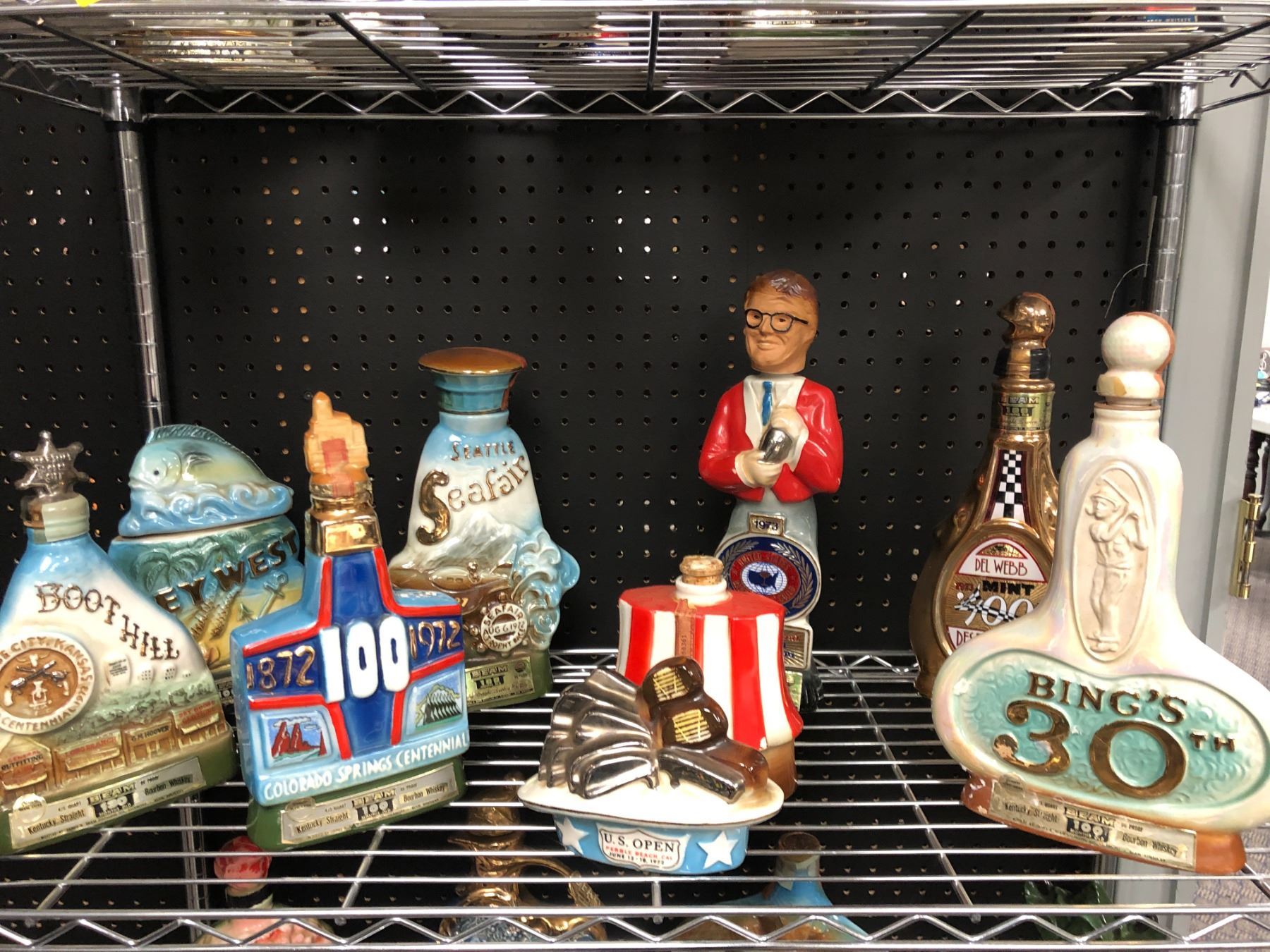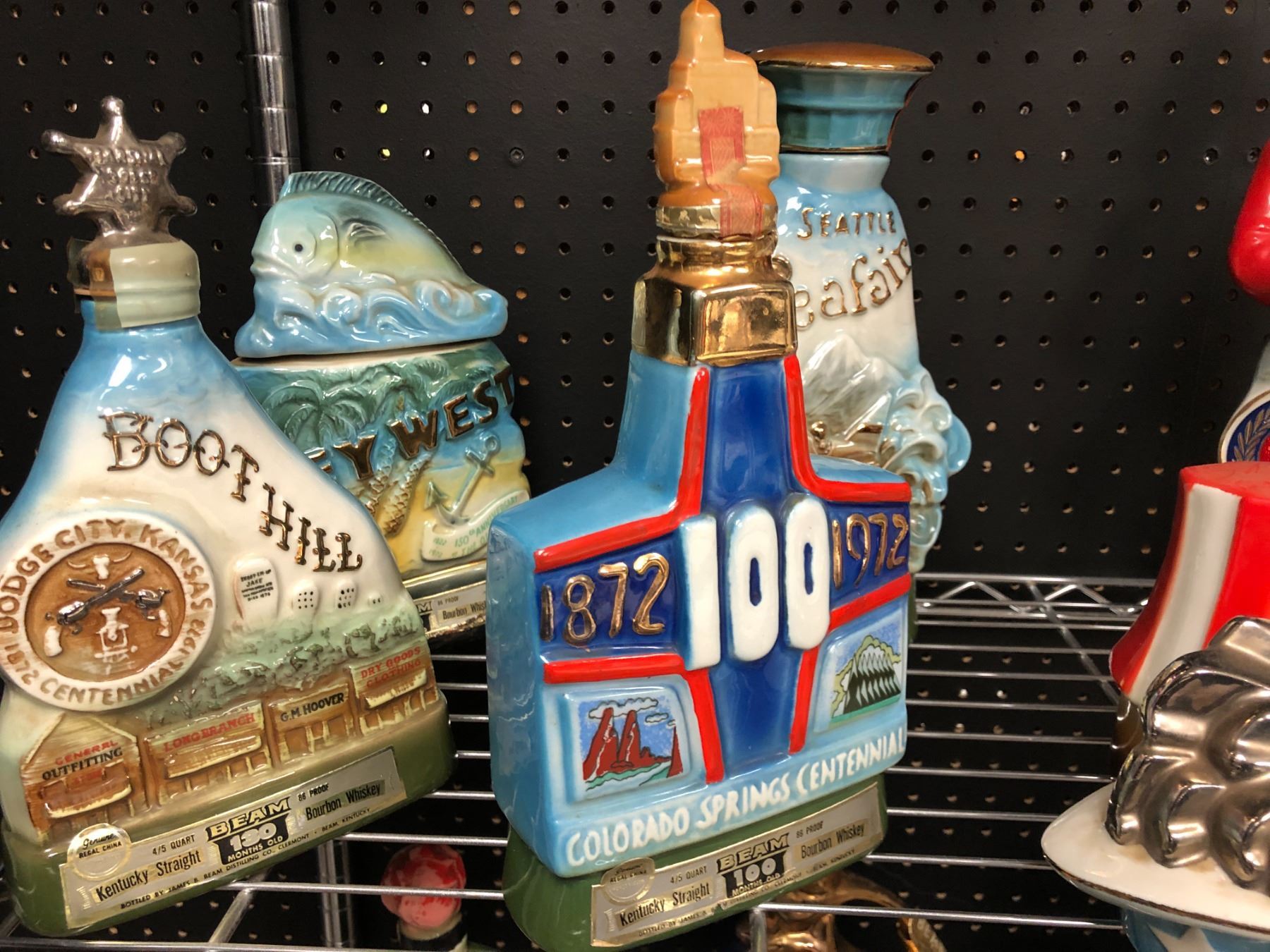 Group of 8 collectible Beam porcelain vintage liquor decanters (empty)