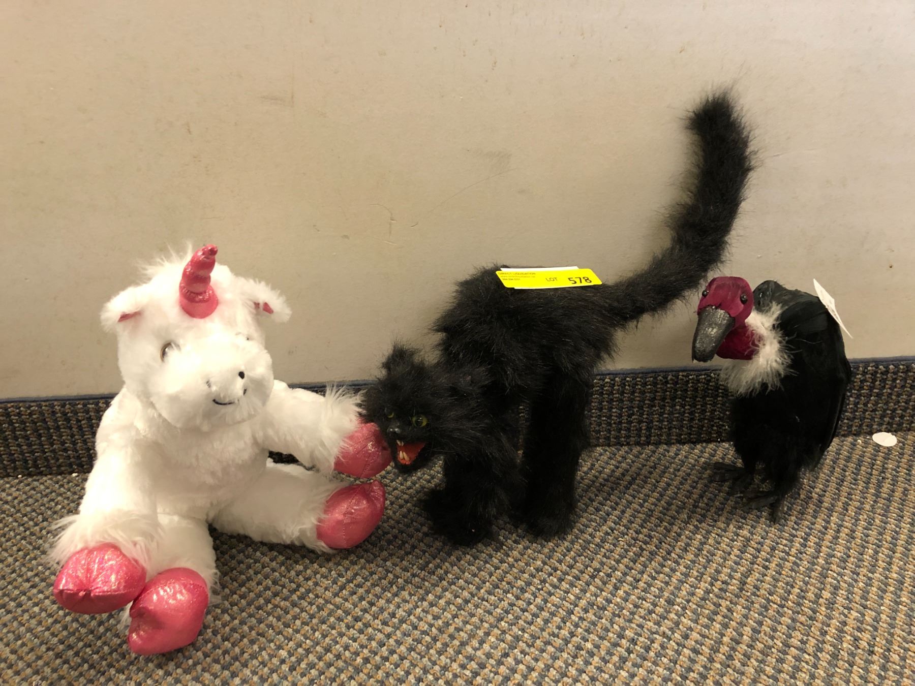 Group of Animals - Black Cat, Vulture and Unicorn. Tallest is 13in tall (not including cat's tail)