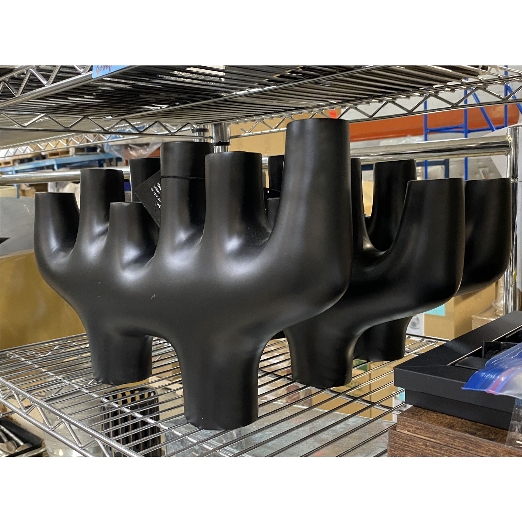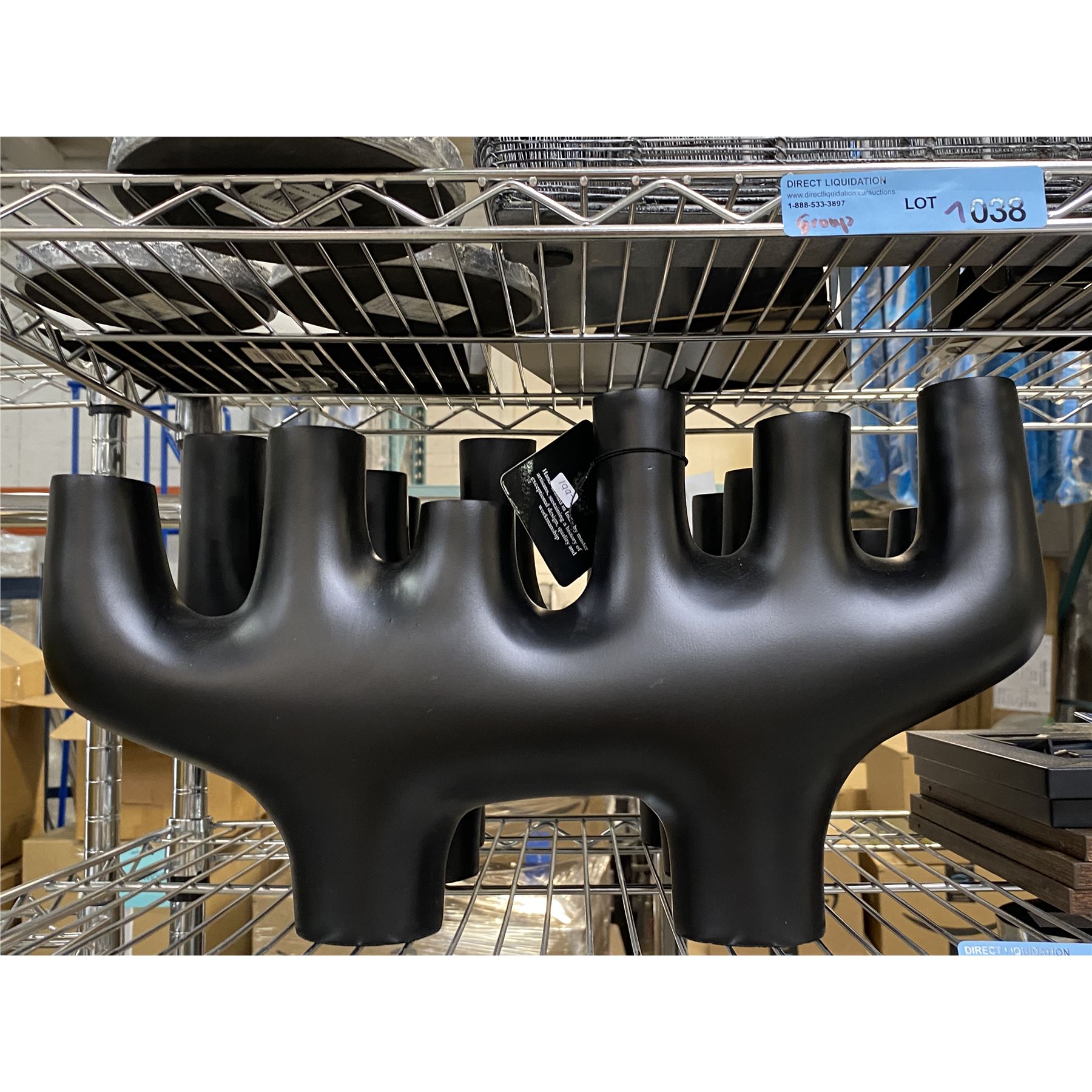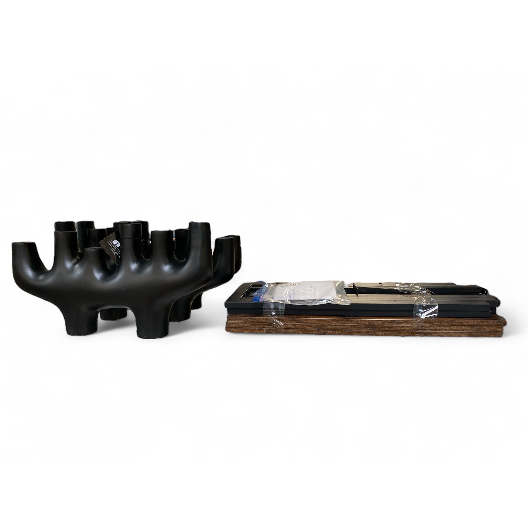 Group of Assorted Decors - includes Set of 3 India Crafted Black Candle Holders Total Retail Value $599.99 & New Hoobro Modern Shelf (No Box - might be incomplete)