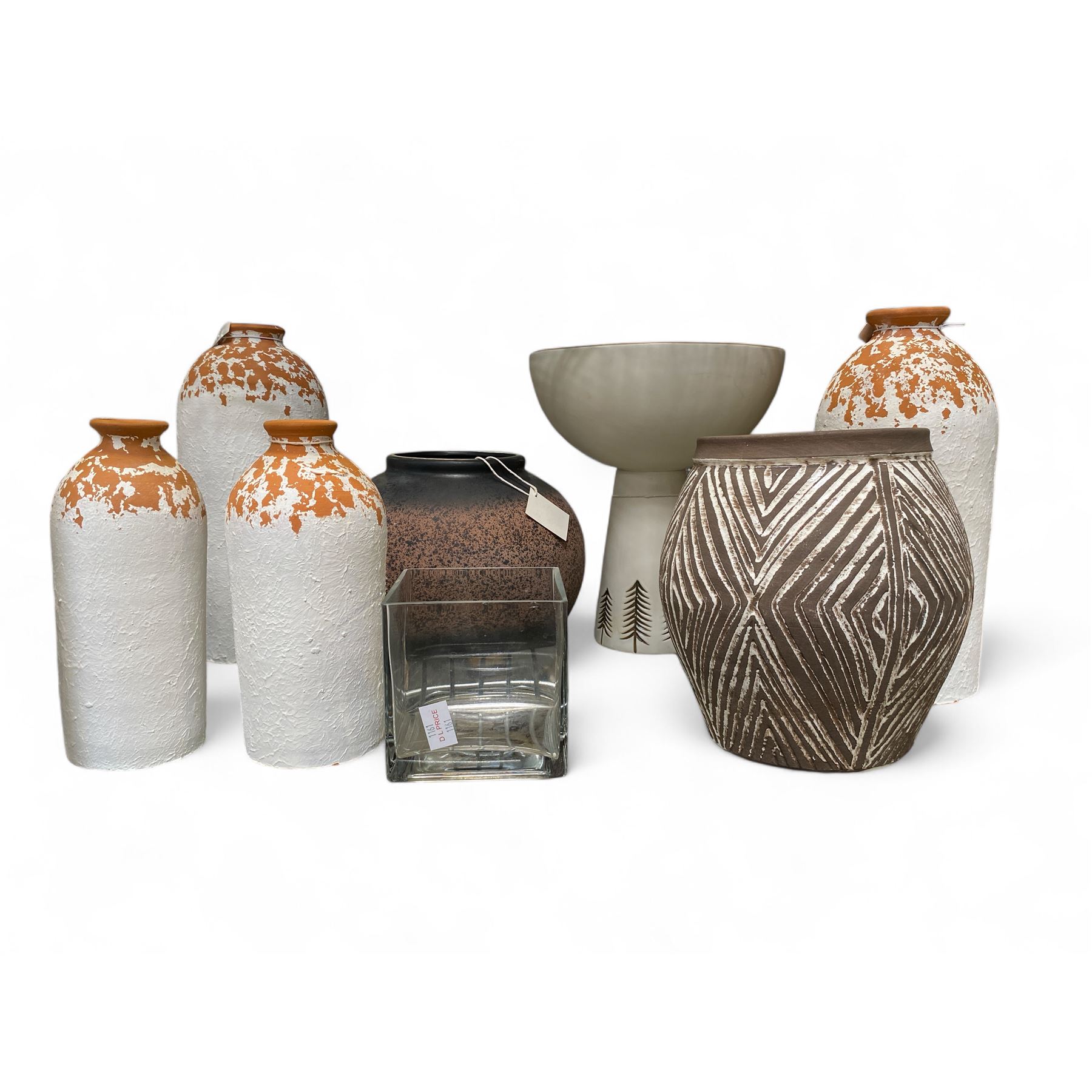 Group of Assorted Decors - includes Set of 4 Assorted Novogratz Matte Orange & White Ceramic Terracotta Vases (Retail Value $399.99) & More