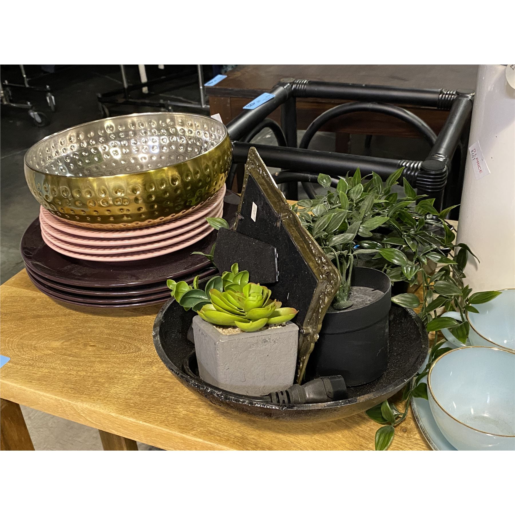 Group of Assorted Home Decor - includes Faux Vegetal Decor, Vases & Blue & Gold Tea Set