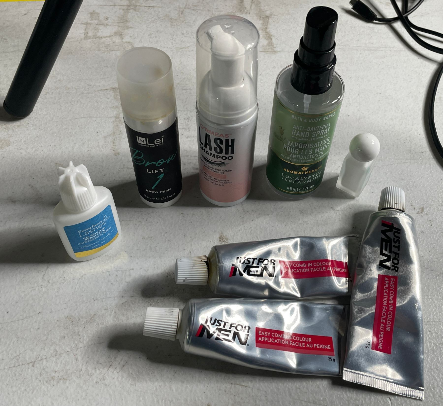 Group of Beauty Products Including - Eyelash Kits, Lash Shampoo, Brow Lift, Pluckers, Hydrogel Eye Patches, Etc.