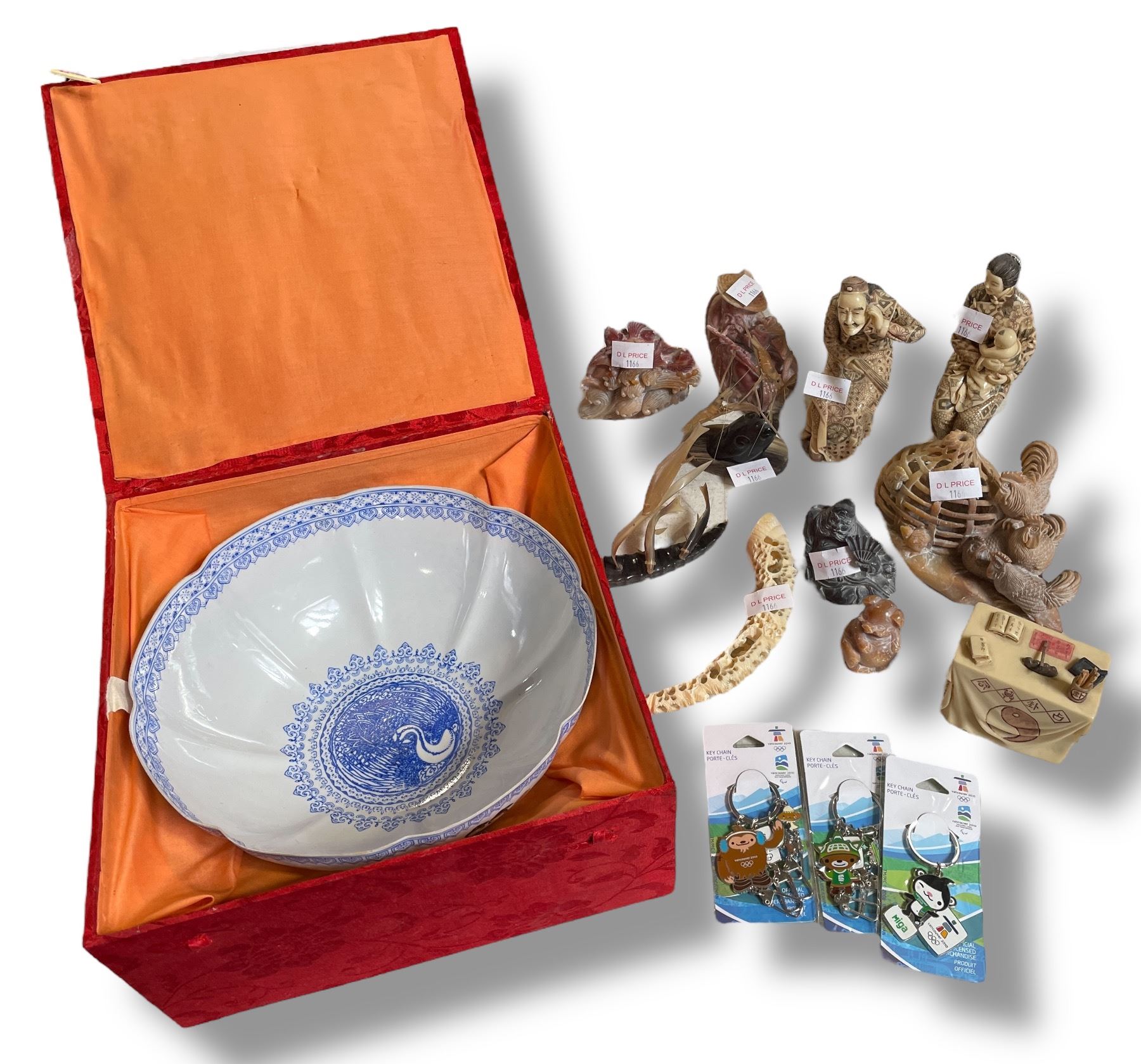 Group of Chinese Decor & Decorative Bowl - includes Figurines, VAncouver 2010 Olympic Games Keychains & More