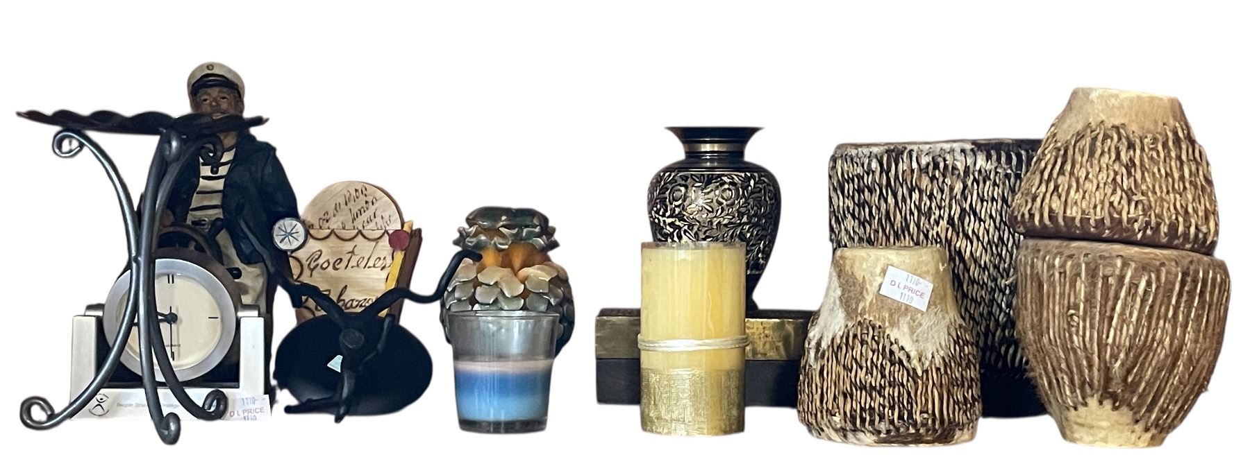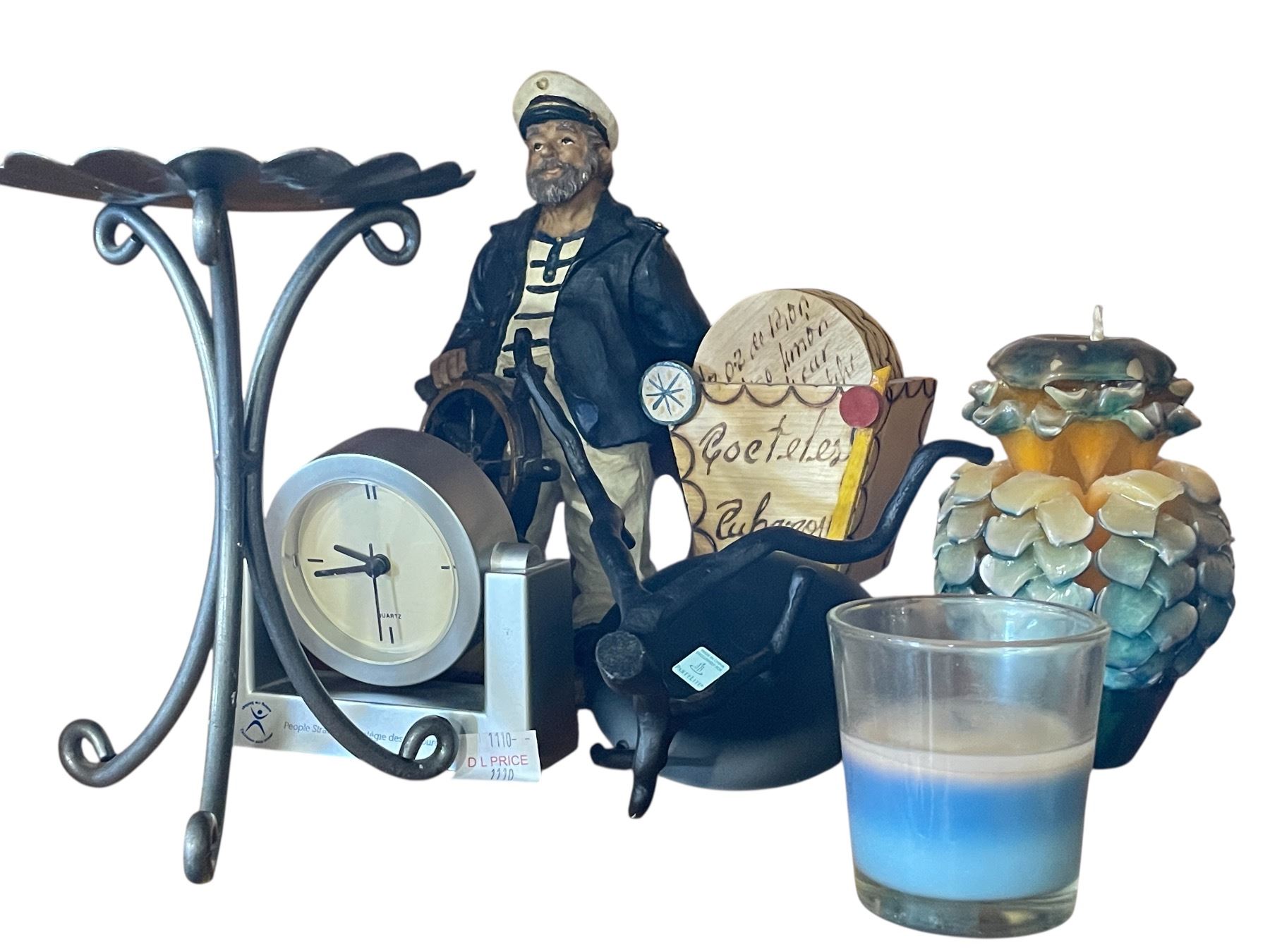Group of Decor - Clock, Candles, Sailor, Mini Drums, Vase, Etc