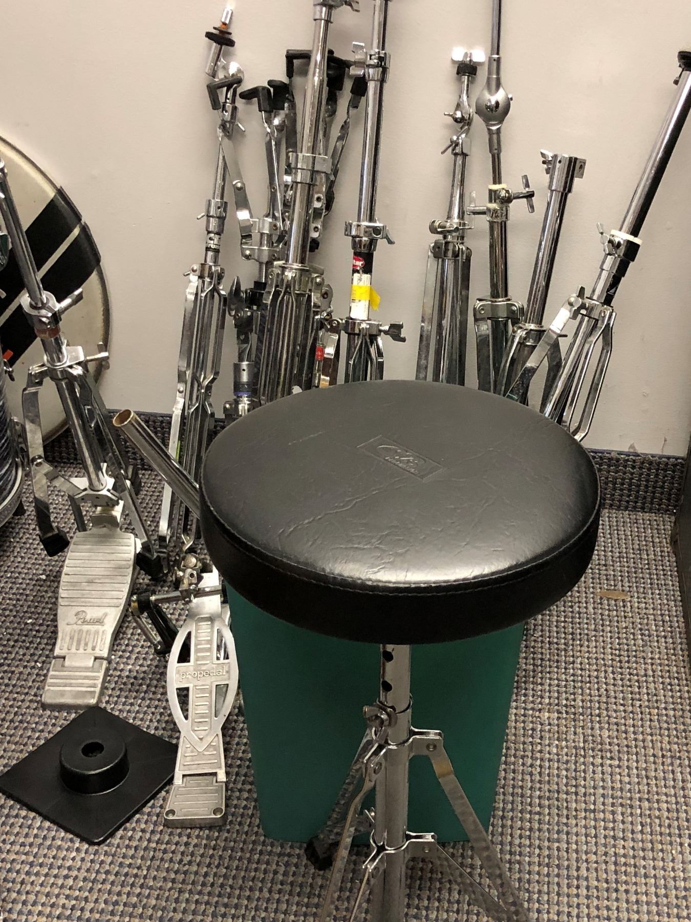 Group of Drum Holders & Hijab Holders - brands such as Yamaha, Rock, Propedal and Pearl. - includes CB Percussion Stool