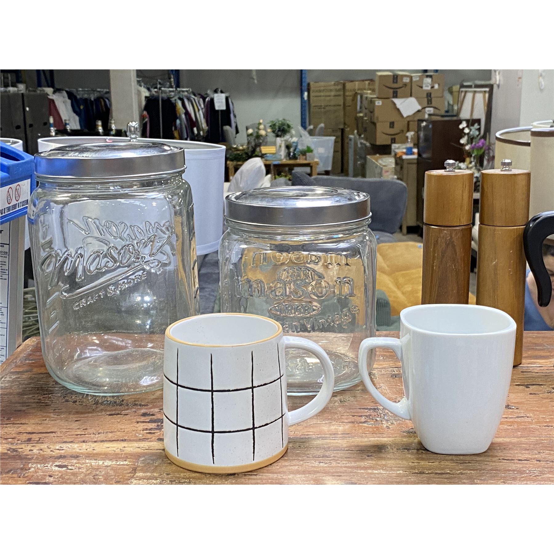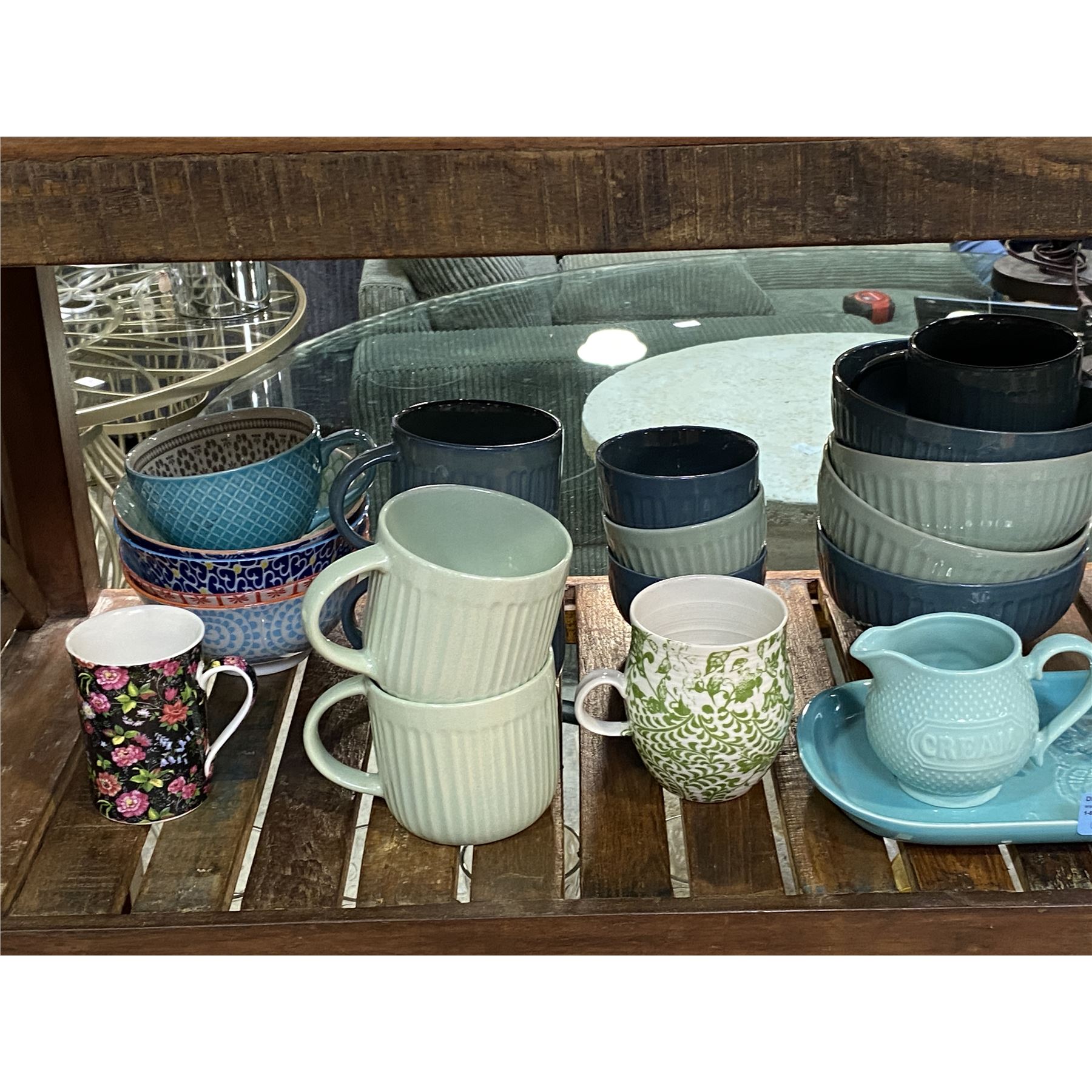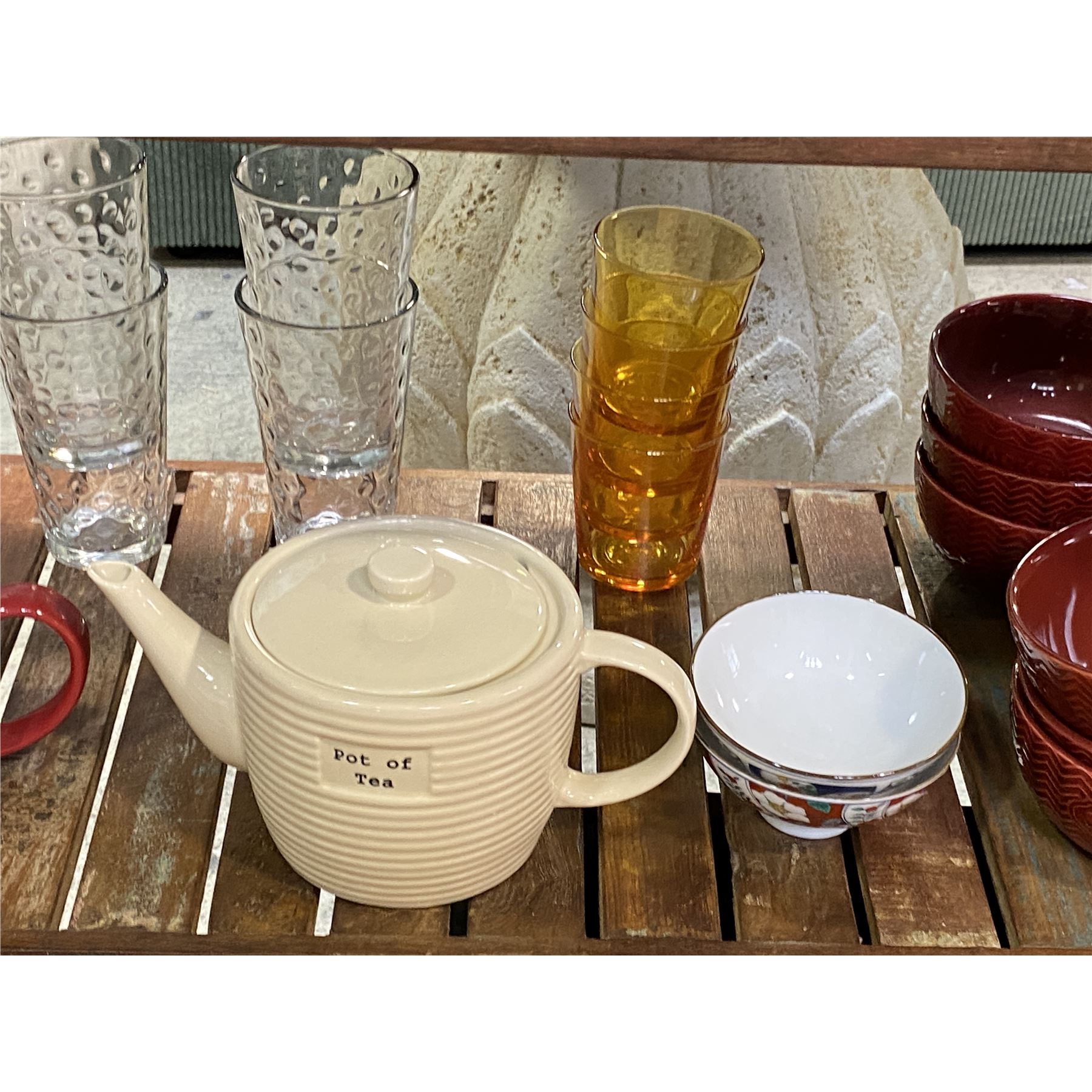 Group of Home Decor & new Tableware - includes Bowls, Glass, Cups, Jars & More (shelf not included)