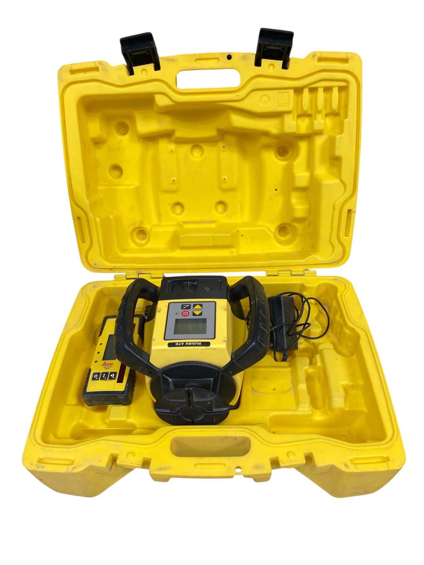 Group of Leica Rugby 270 Rotary Laser Level Kit w/ Receiver & Case