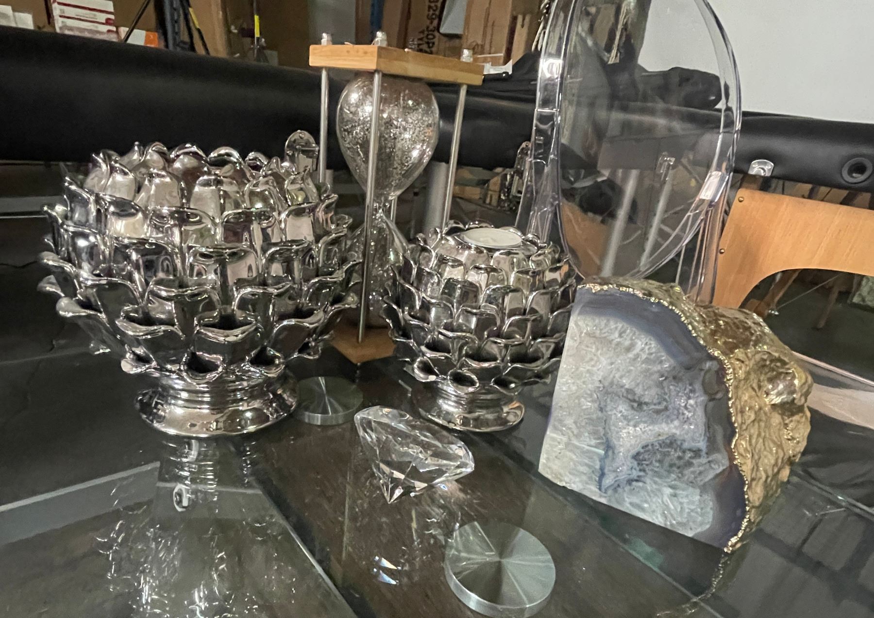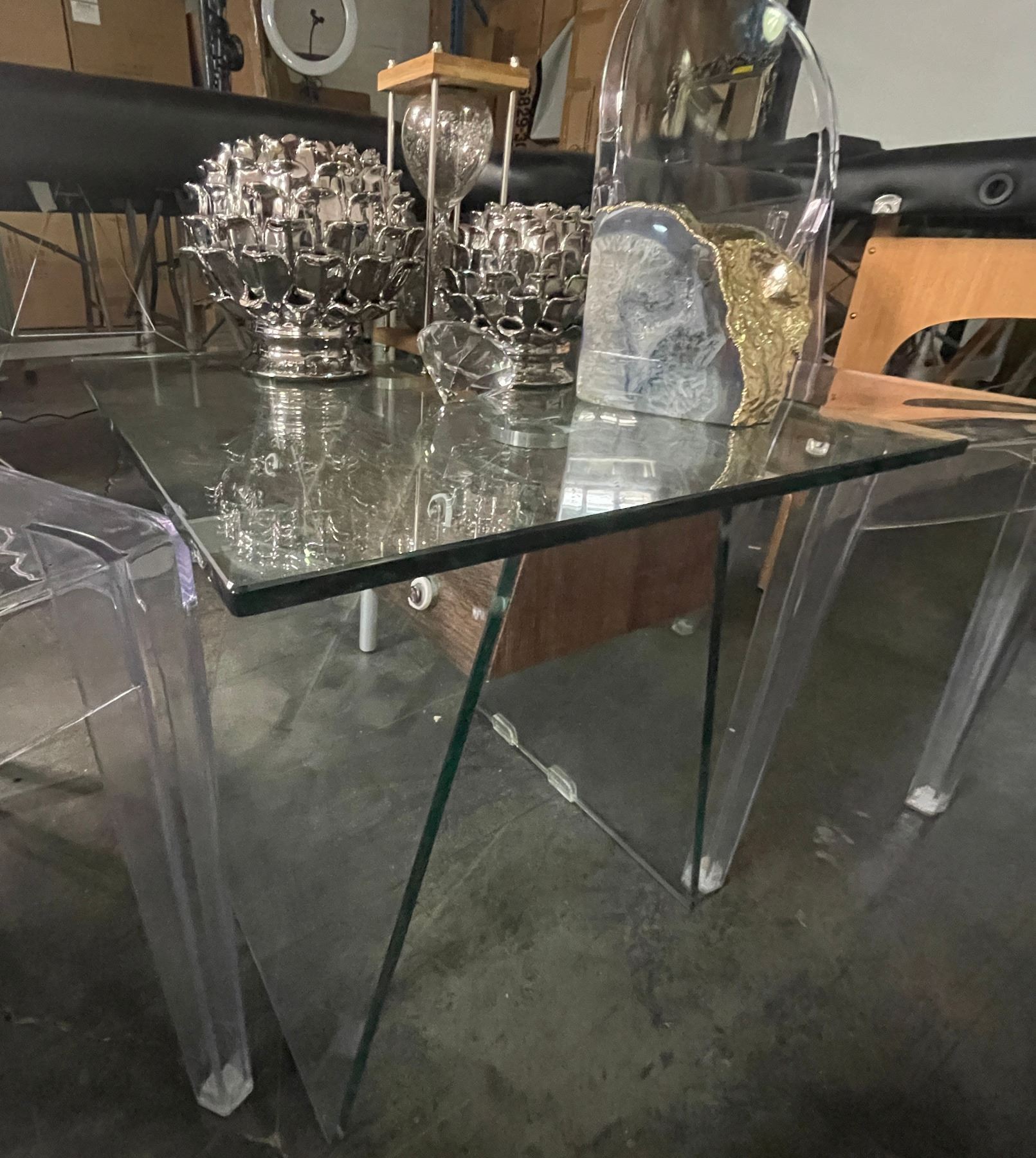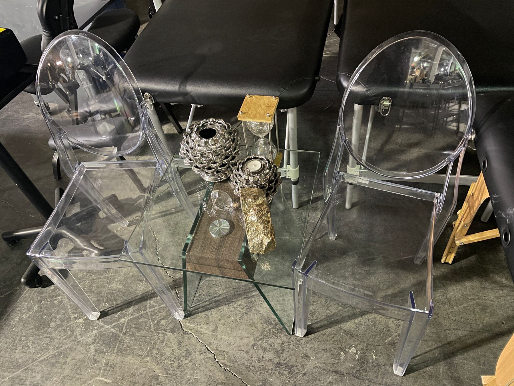 Group of Misc Including - Glass Side Table, 2 Plastic Chairs & Misc Decor
