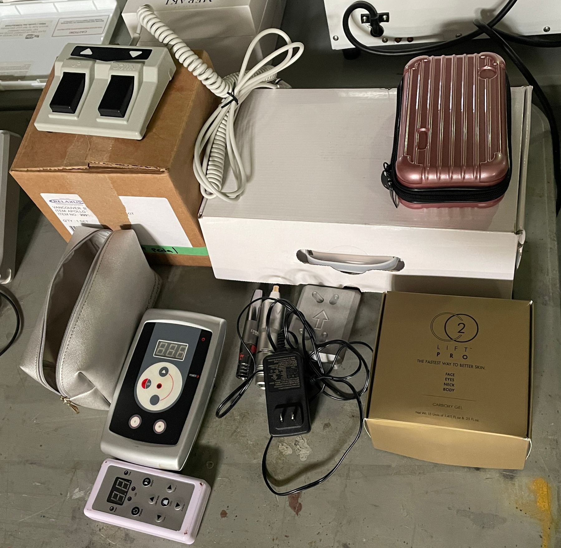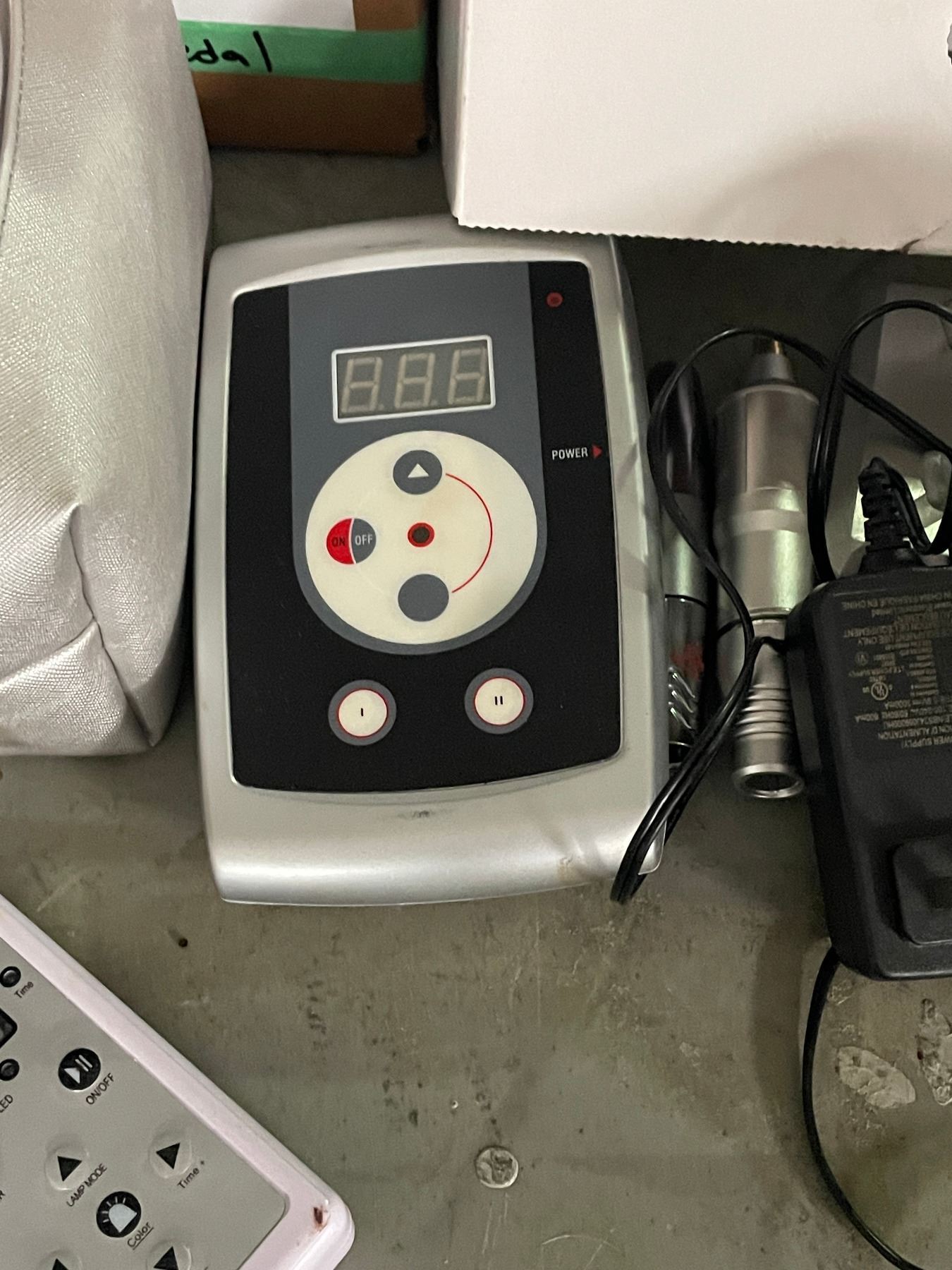 Group of Misc Including - Tattoo Supply Machine Kit (Missing few parts), Foot Pedal Switch, 7 Colour LED Beauty Mask, Etc.