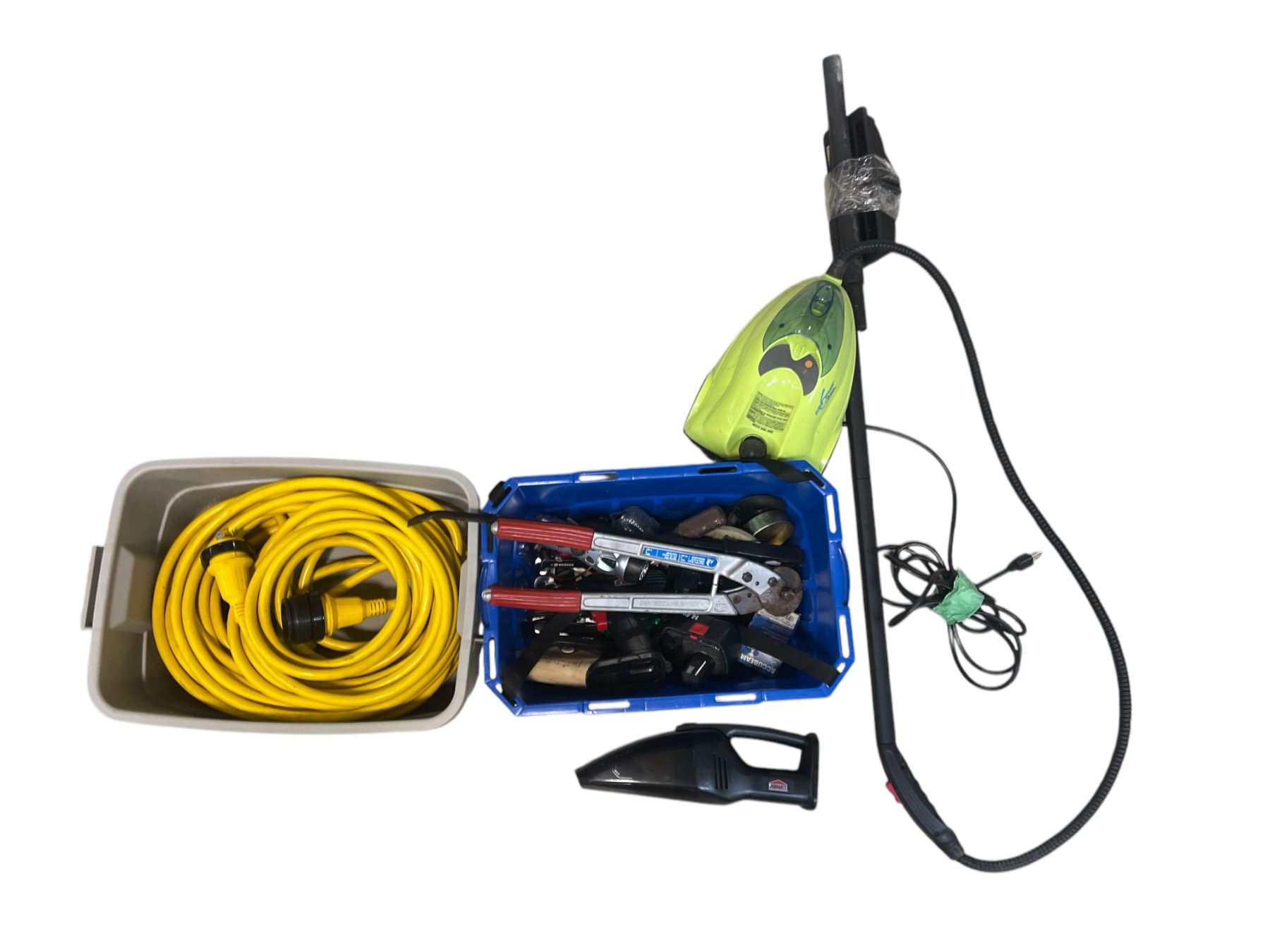 Group of Misc Tools, Vacuum, Euro Green Steamer & Long Extension Cord