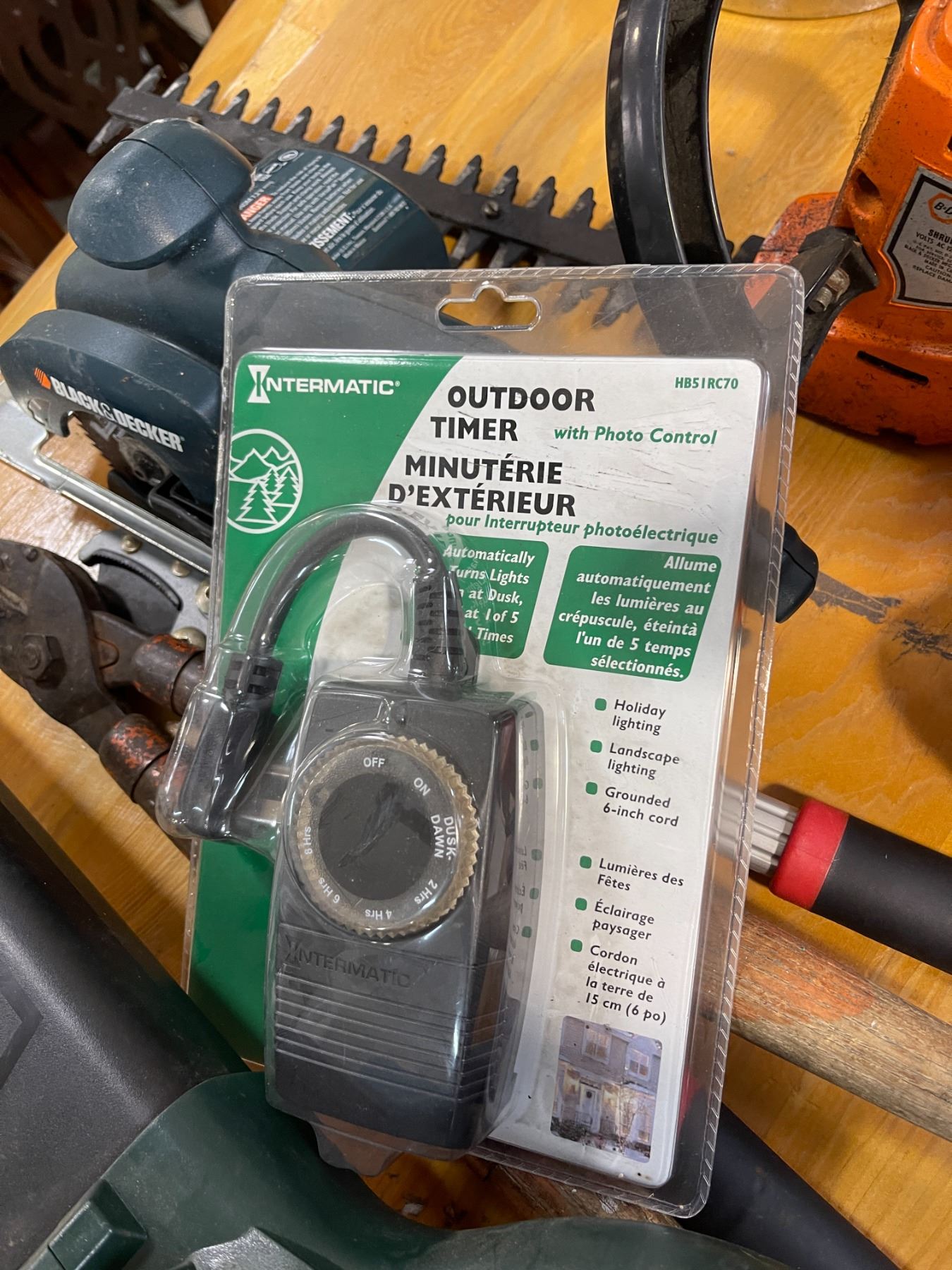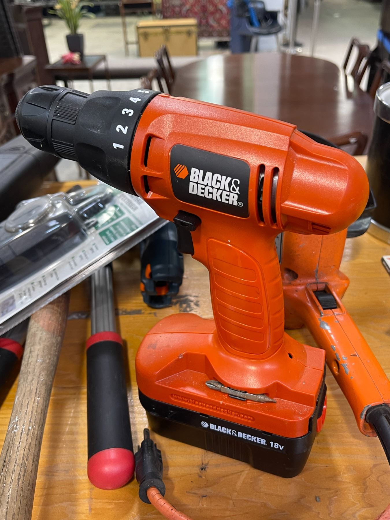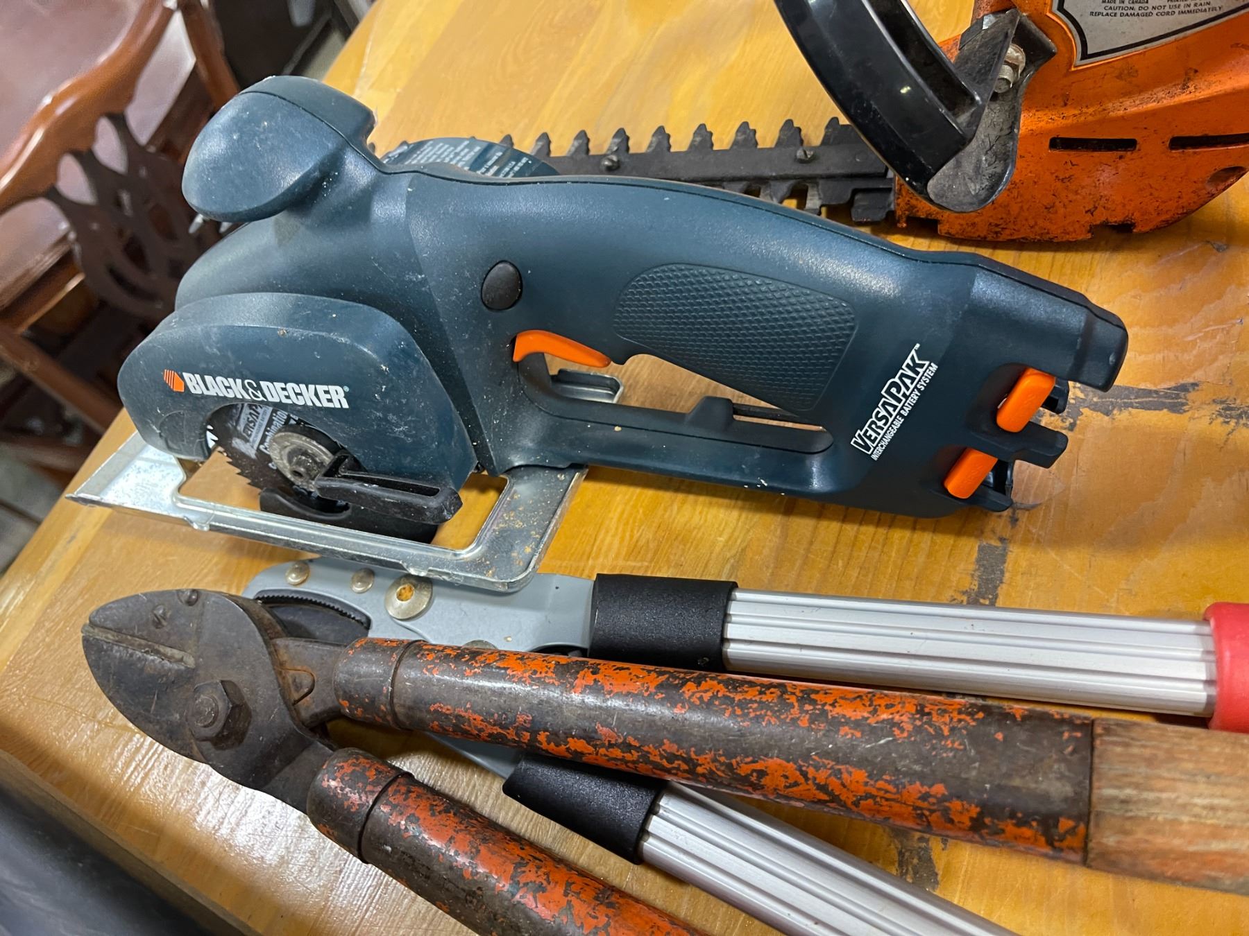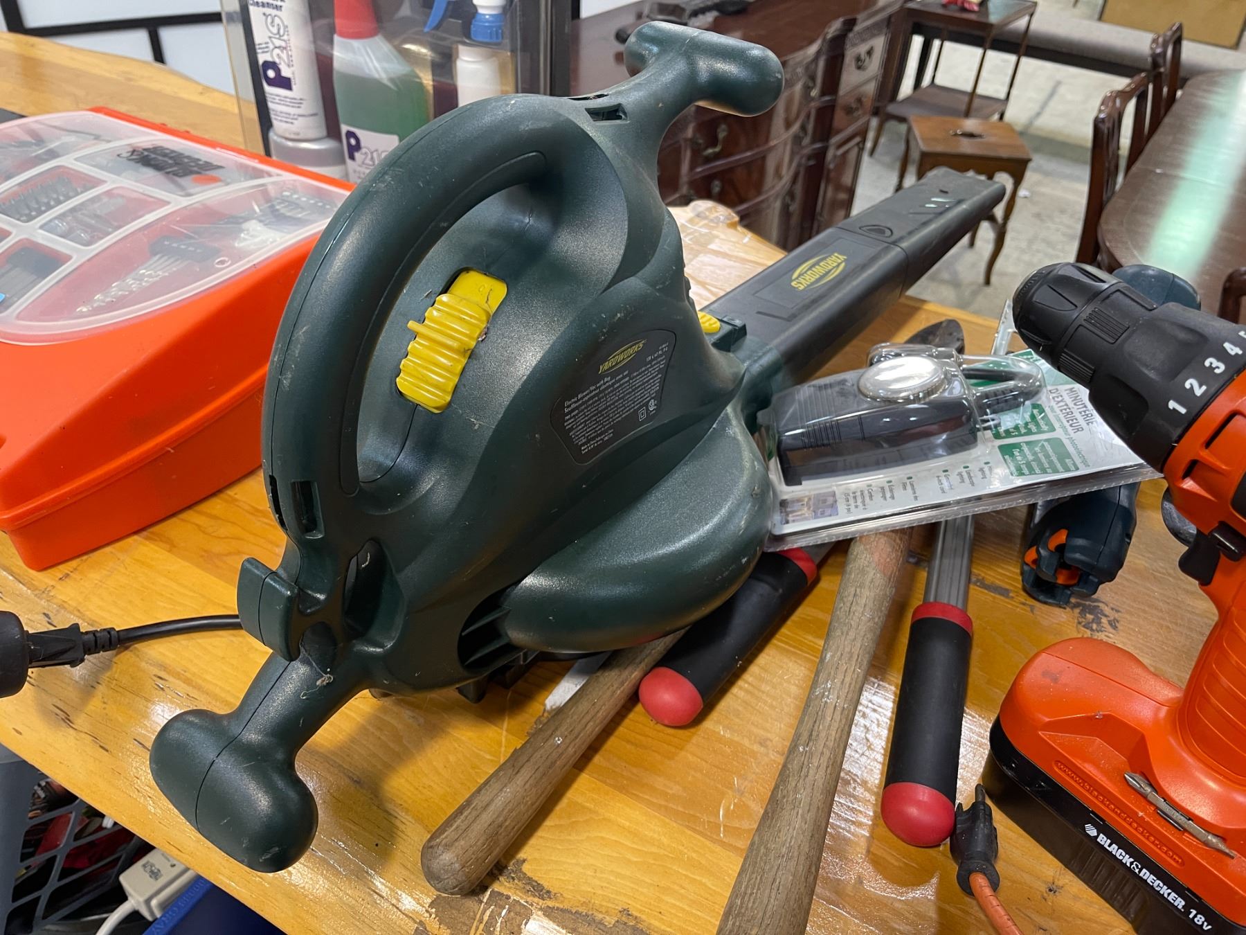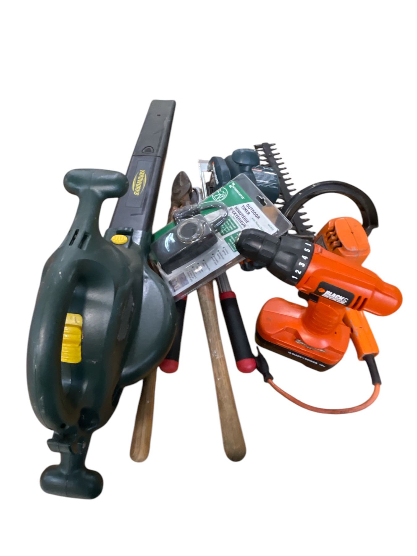 Group of Misc Tools - Yard Works Leaf Blower, Black + Decker Cordless Drill, Black & Decker Shrub Cutter, Outdoor Timer, Etc.