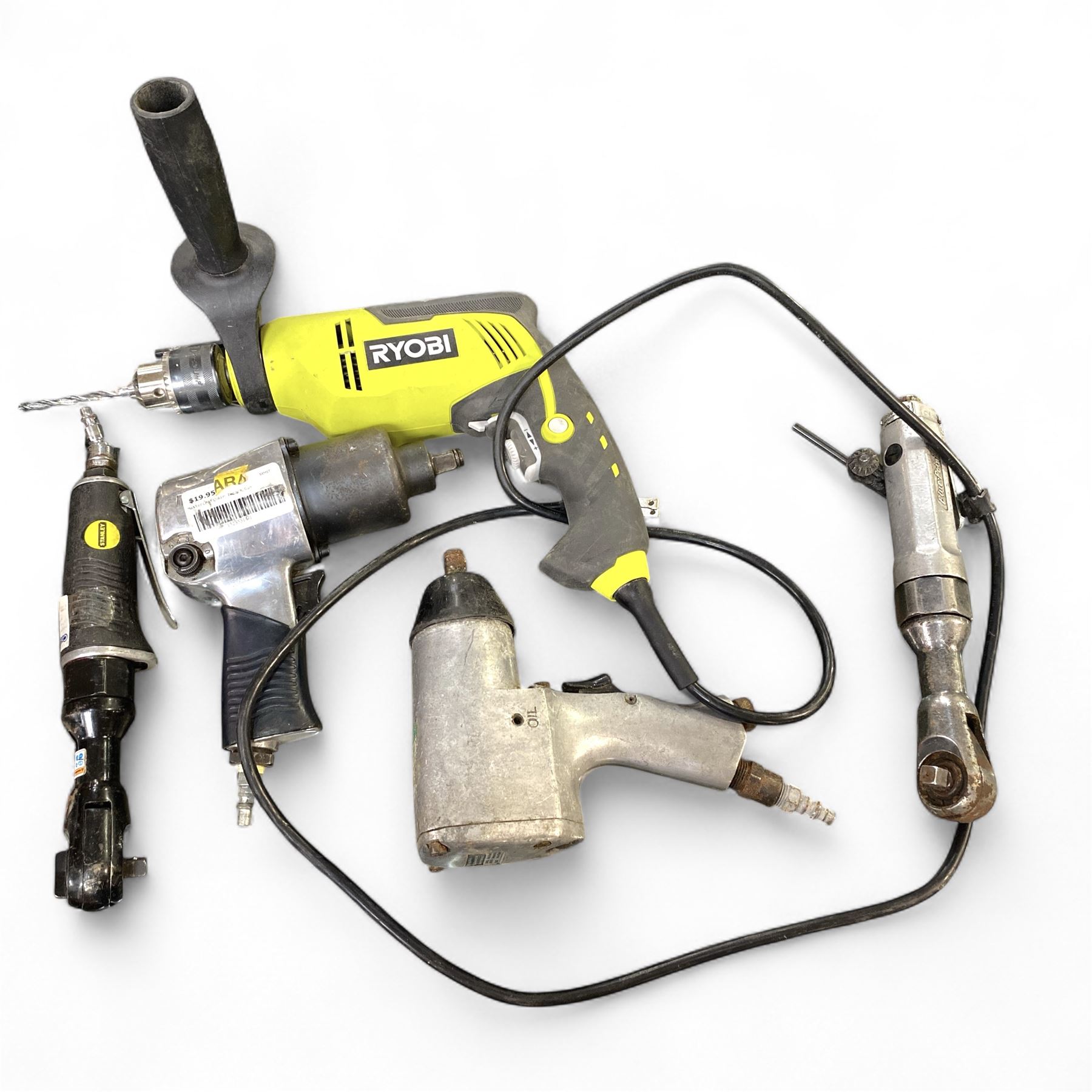 Group of Misc. Tools - includes Ryobi Hammer Drill HD420:Air Impact Guns & More (Untested)