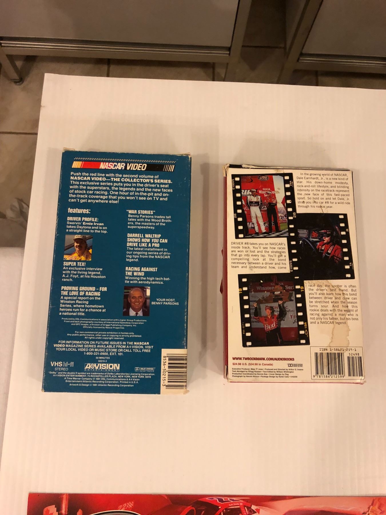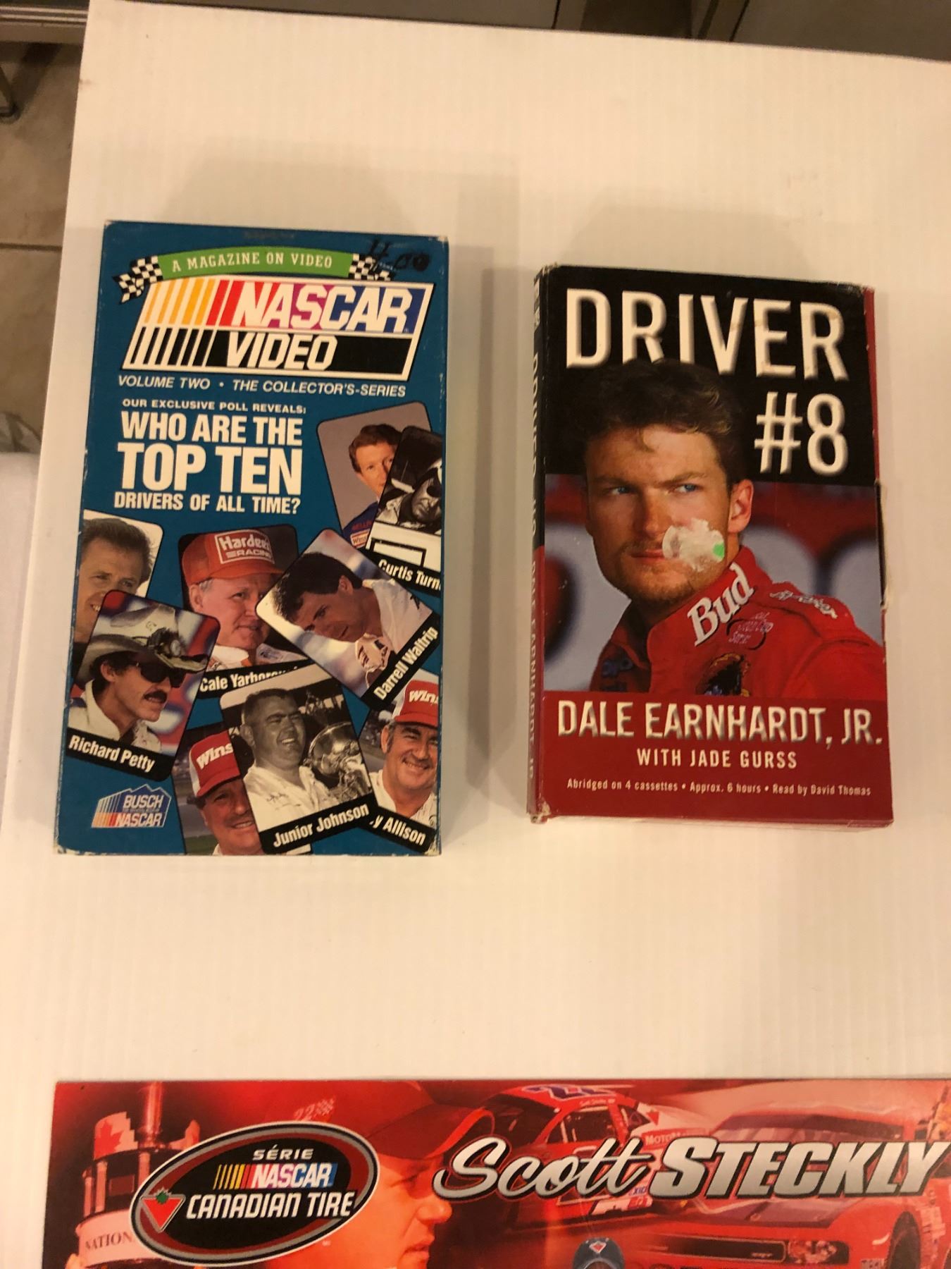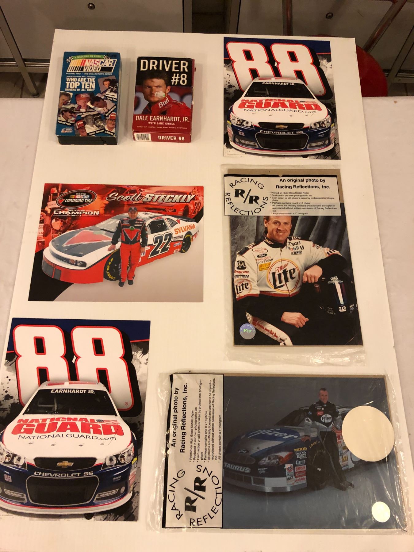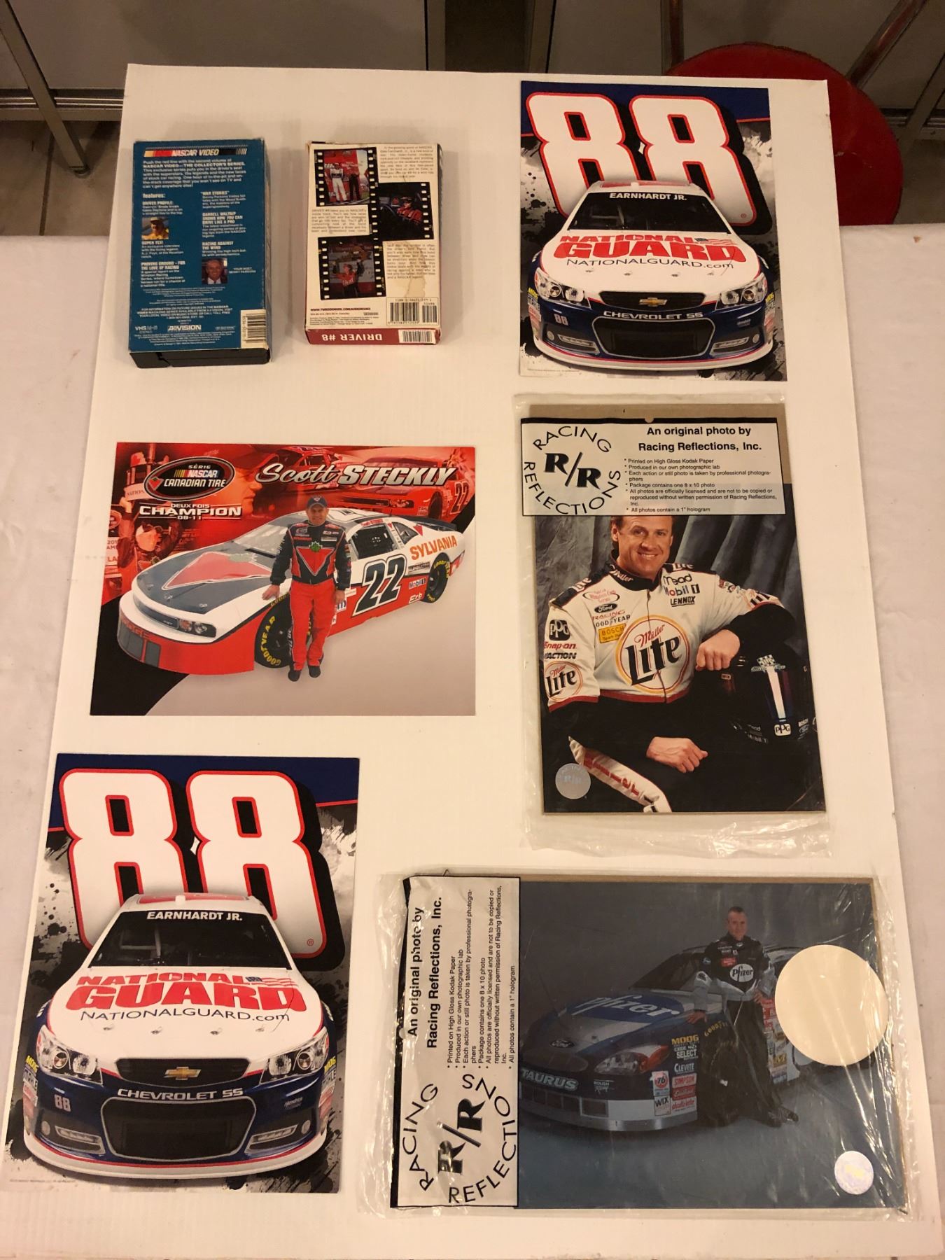 Group of NASCAR racers collectibles - 2 VHS tapes/ 2 original pictures by Racing Reflections, Inc./ 3 photo cards etc.