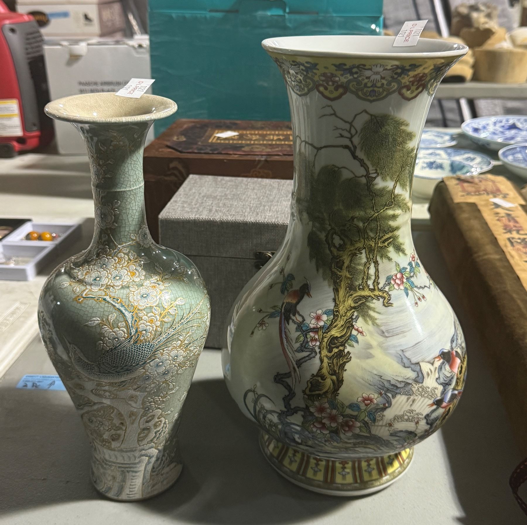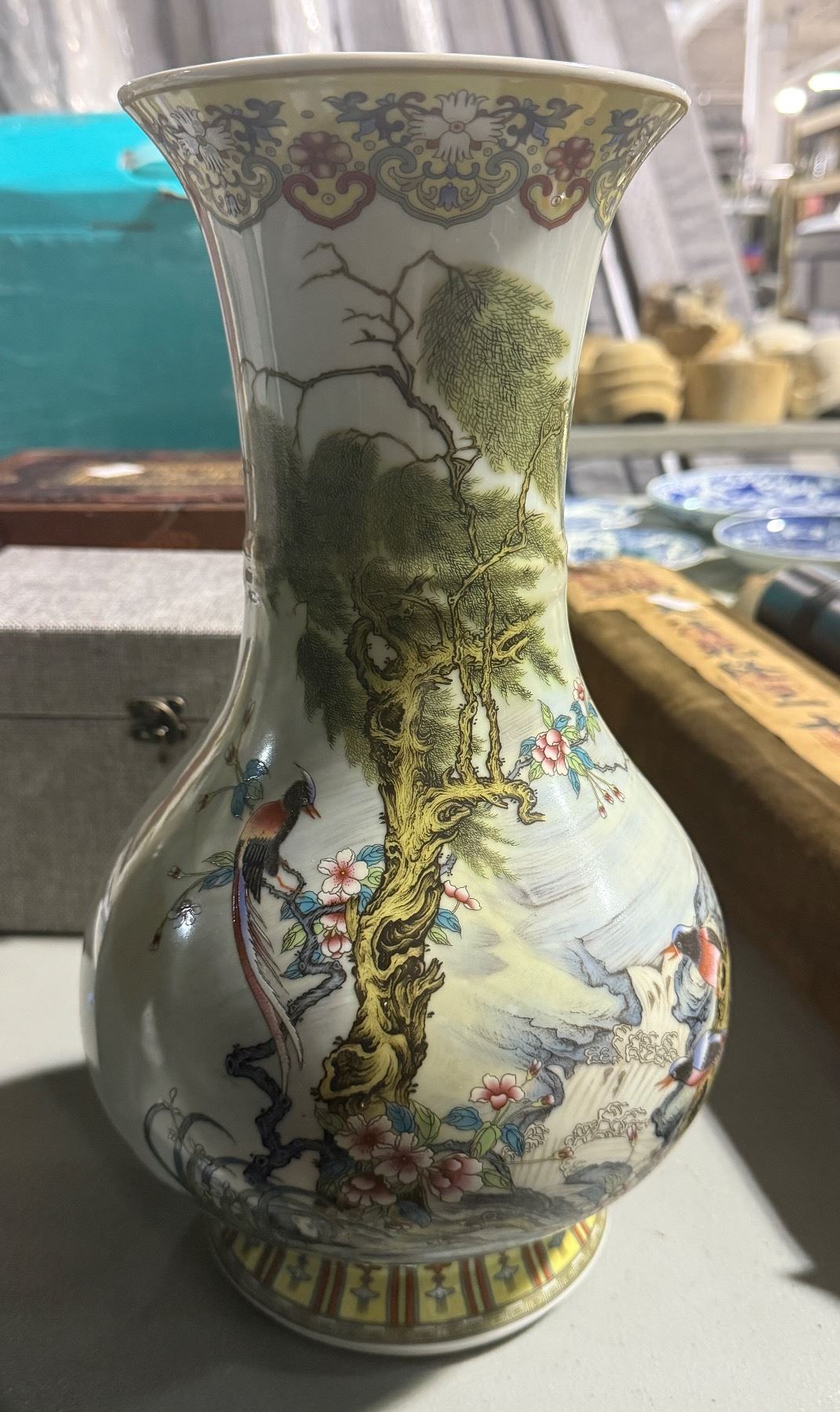Group of Pink Glazed Scholar Pot & Famille Rose Wine Vessel in Case