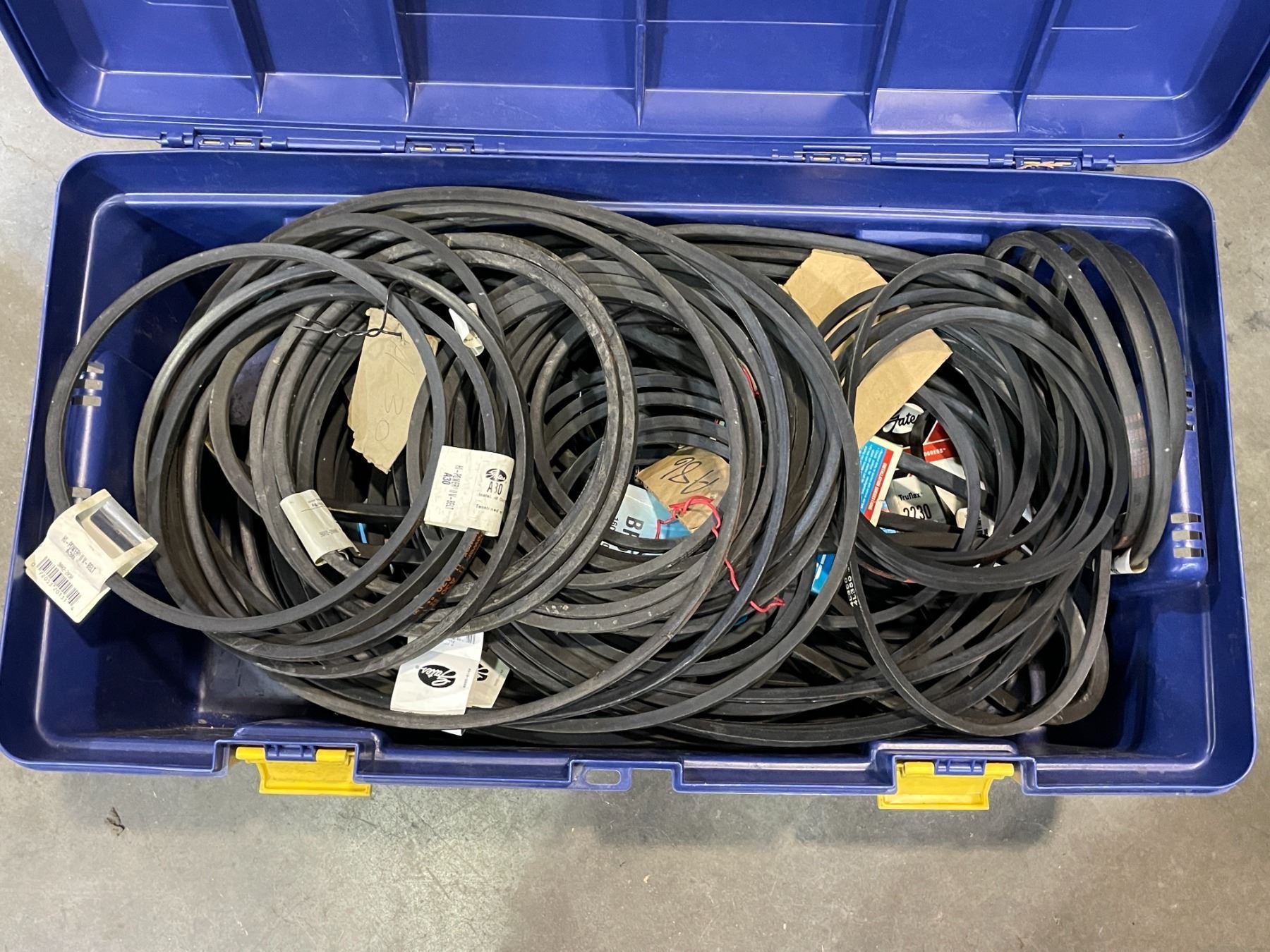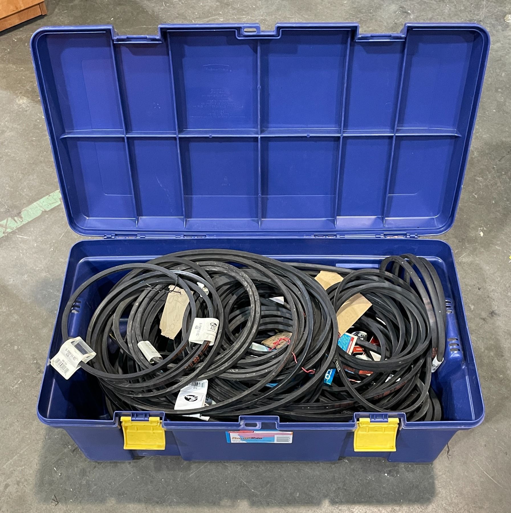 Group of Rubber maid storage bin w/Hi-power V-belts