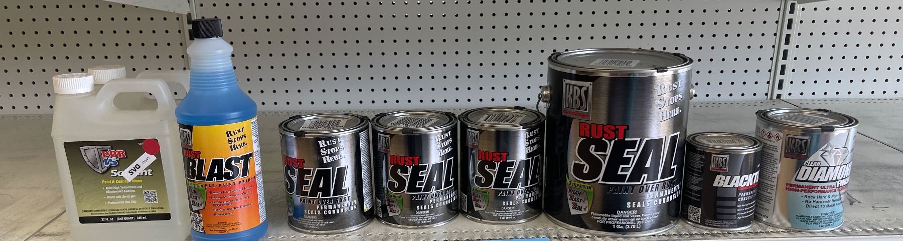 Group of Rust Seal, Pre-Paint Primer, Paint & Coating Thinner, Coating, Etc.