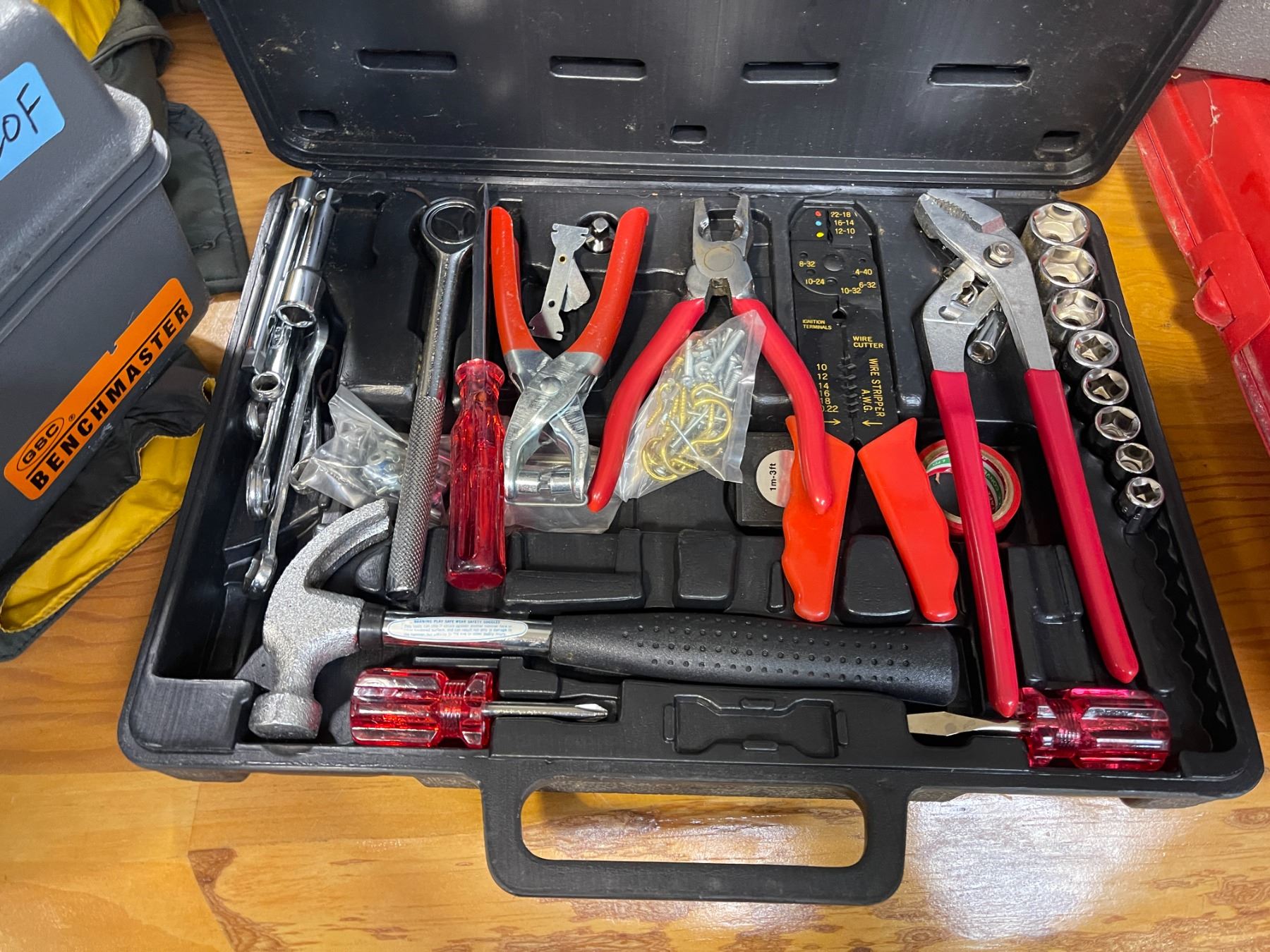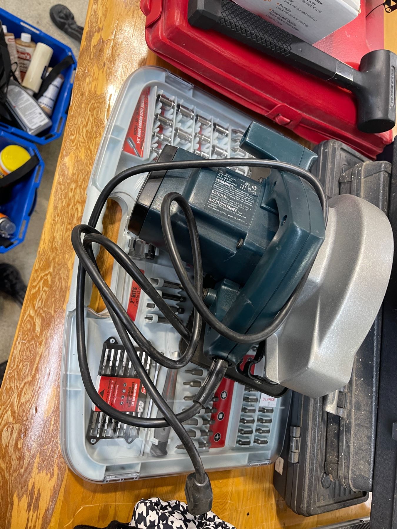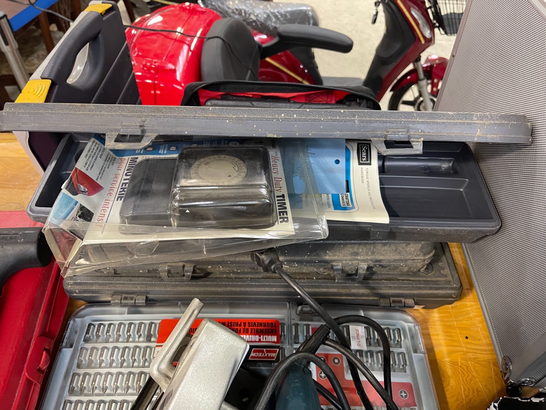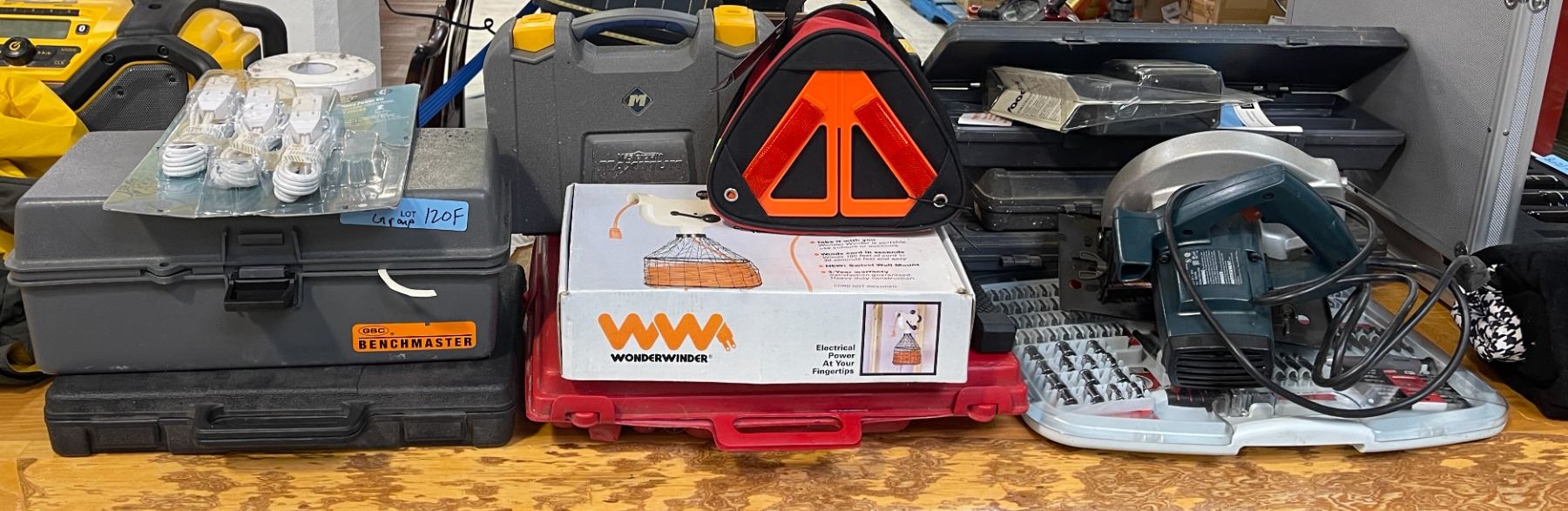 Group of Tools Cases w/Misc Tool Conents, Multi-Driver & Precision Bit Set, Super Sharp 7 1/4" Saw Blade, Extension Cord Holder, Etc.