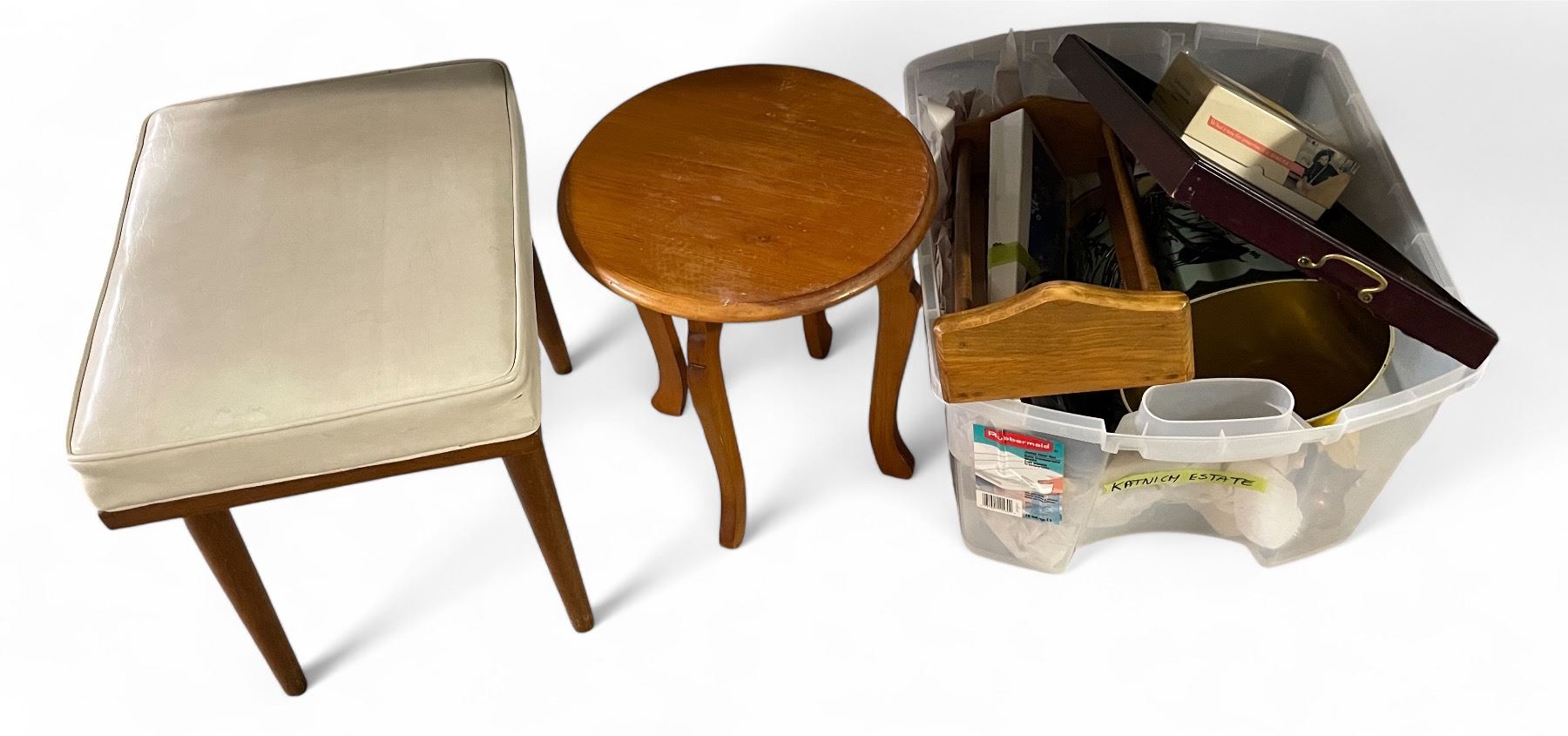 Group of Vinyl-Top Stool & Round Wooden Side Table, Misc Decor, Etc.