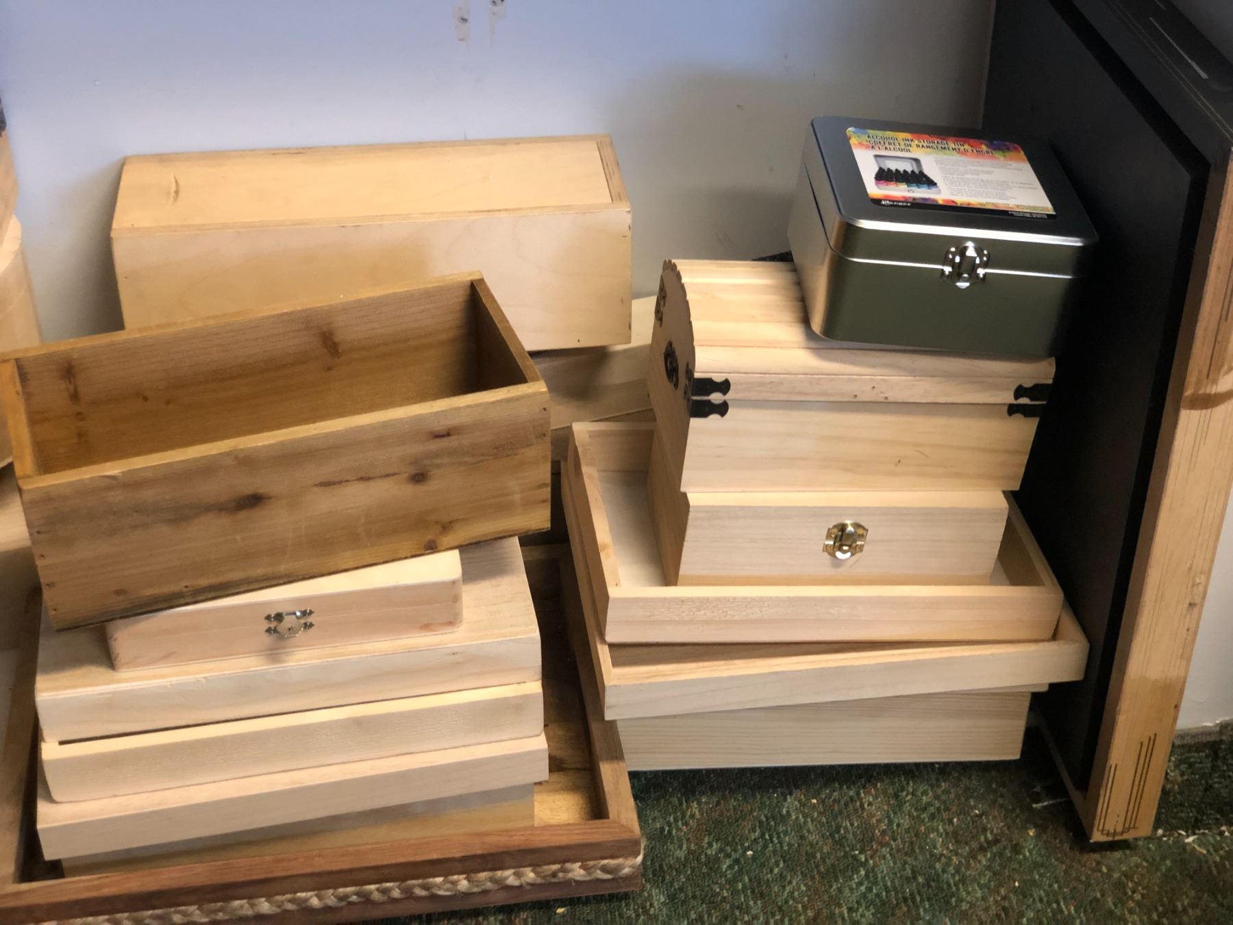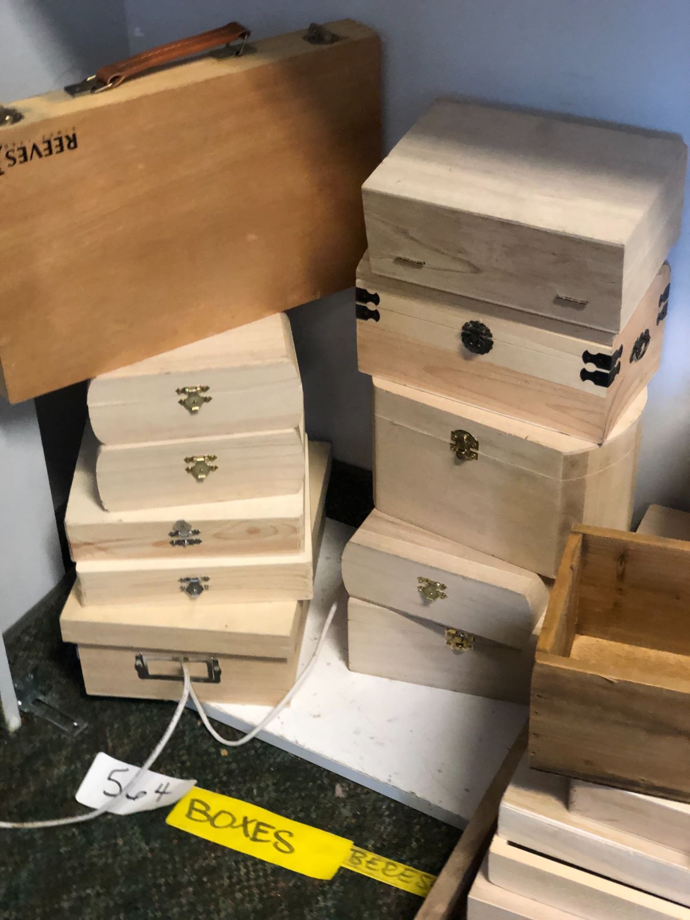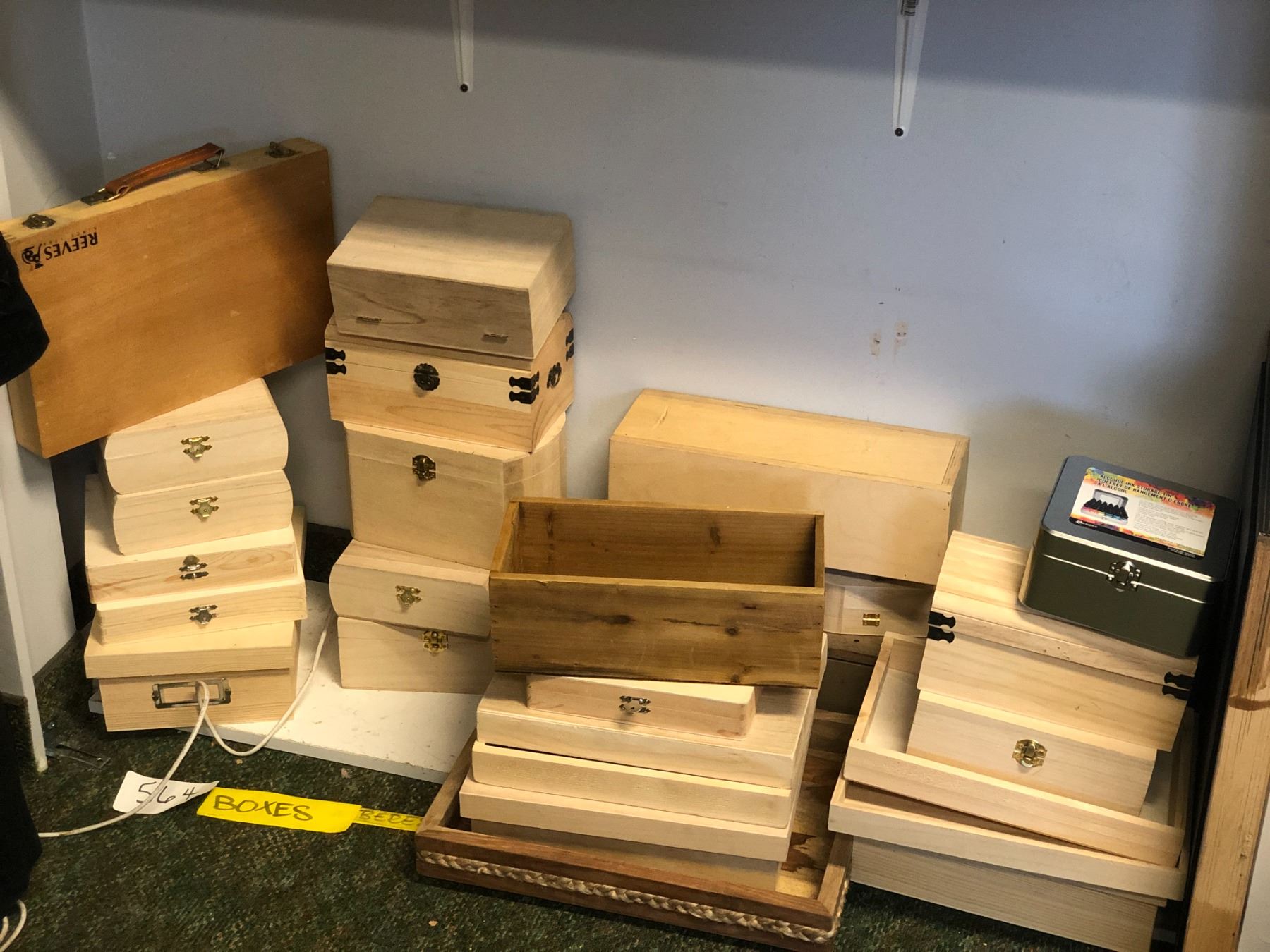 Group of "approx 25" assorted wooden keepsake boxes (From the superhero show)