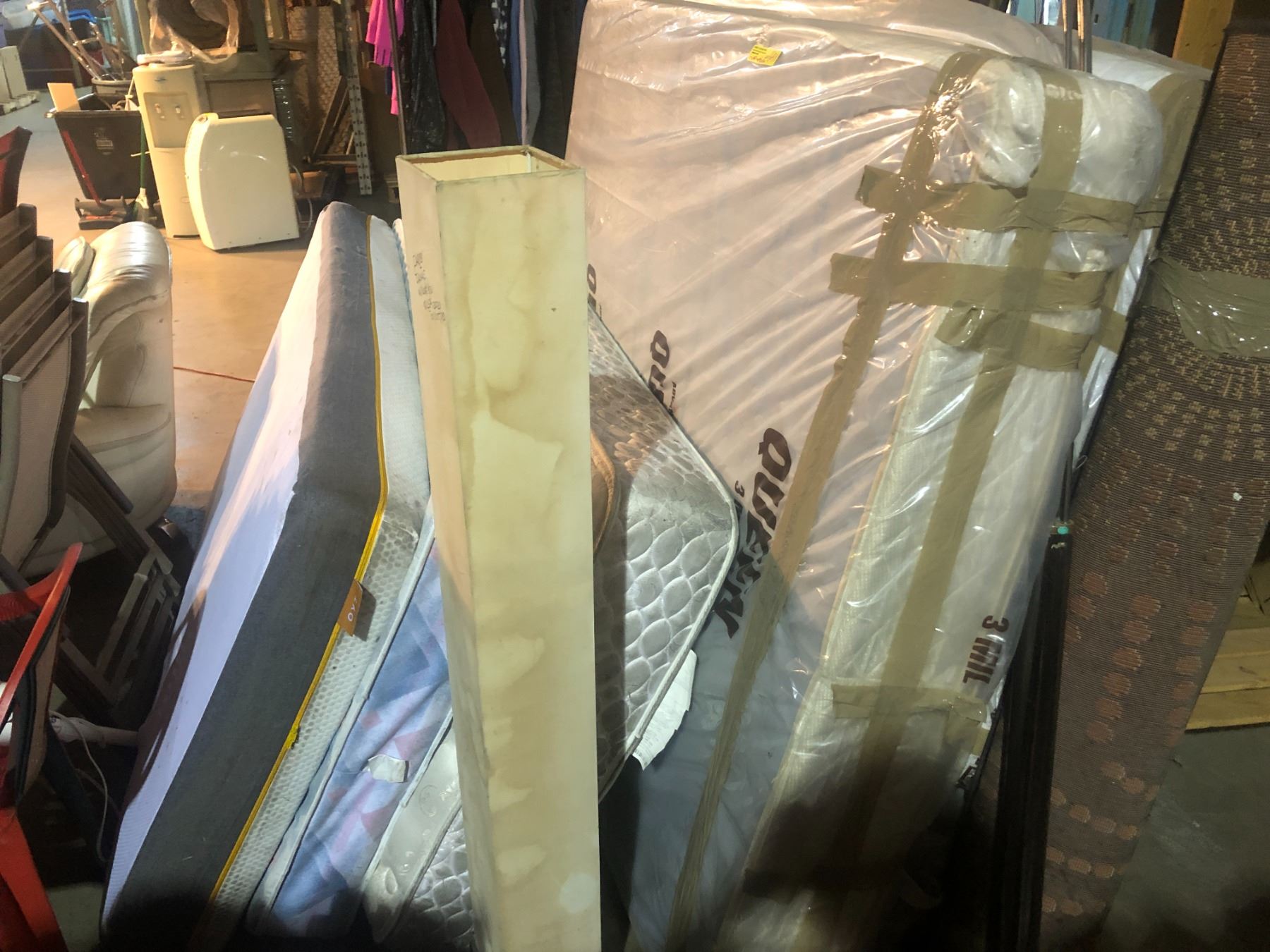 Group of approx. 3 mattresses, carpet, table, etc... (3 twin mattresses only, queen not included)