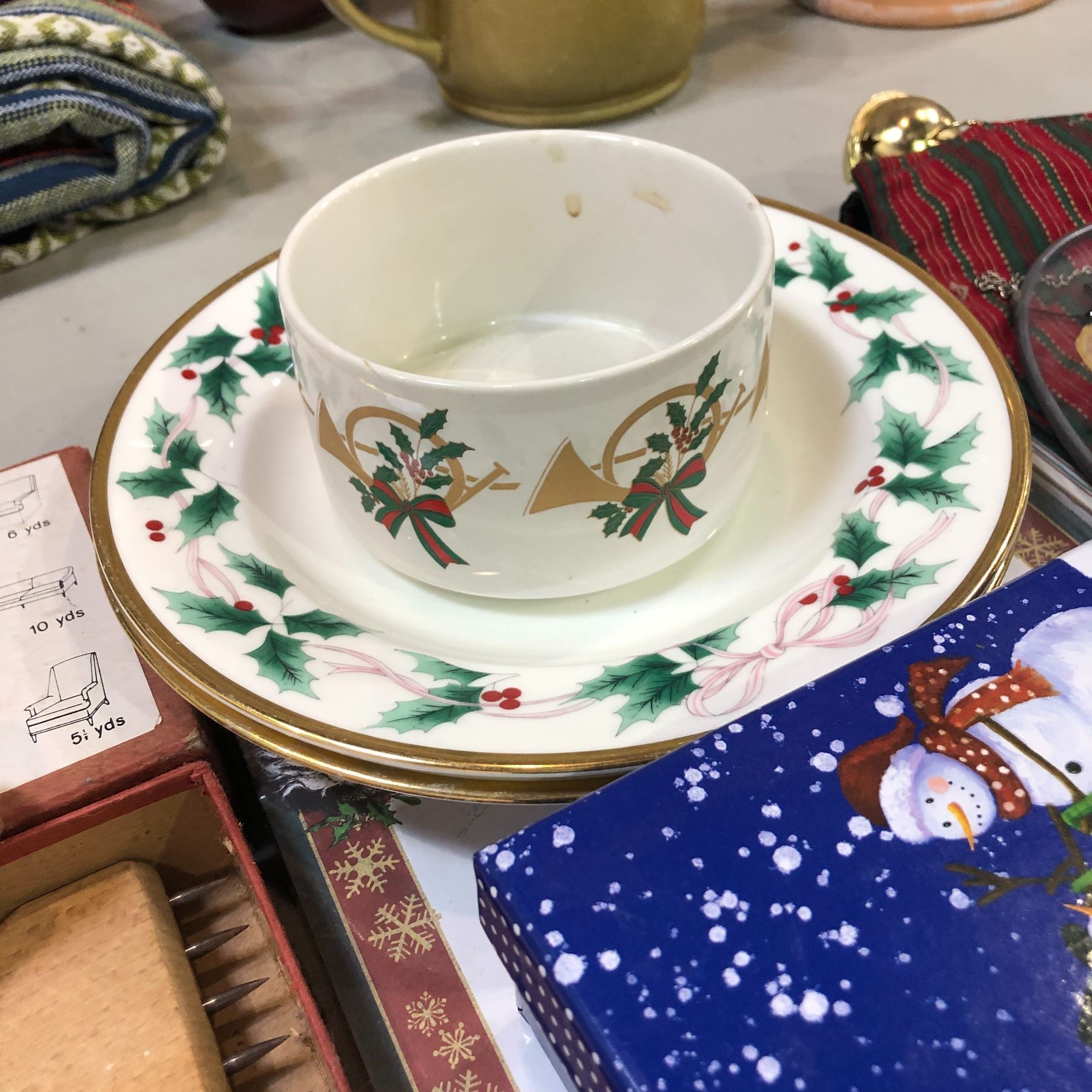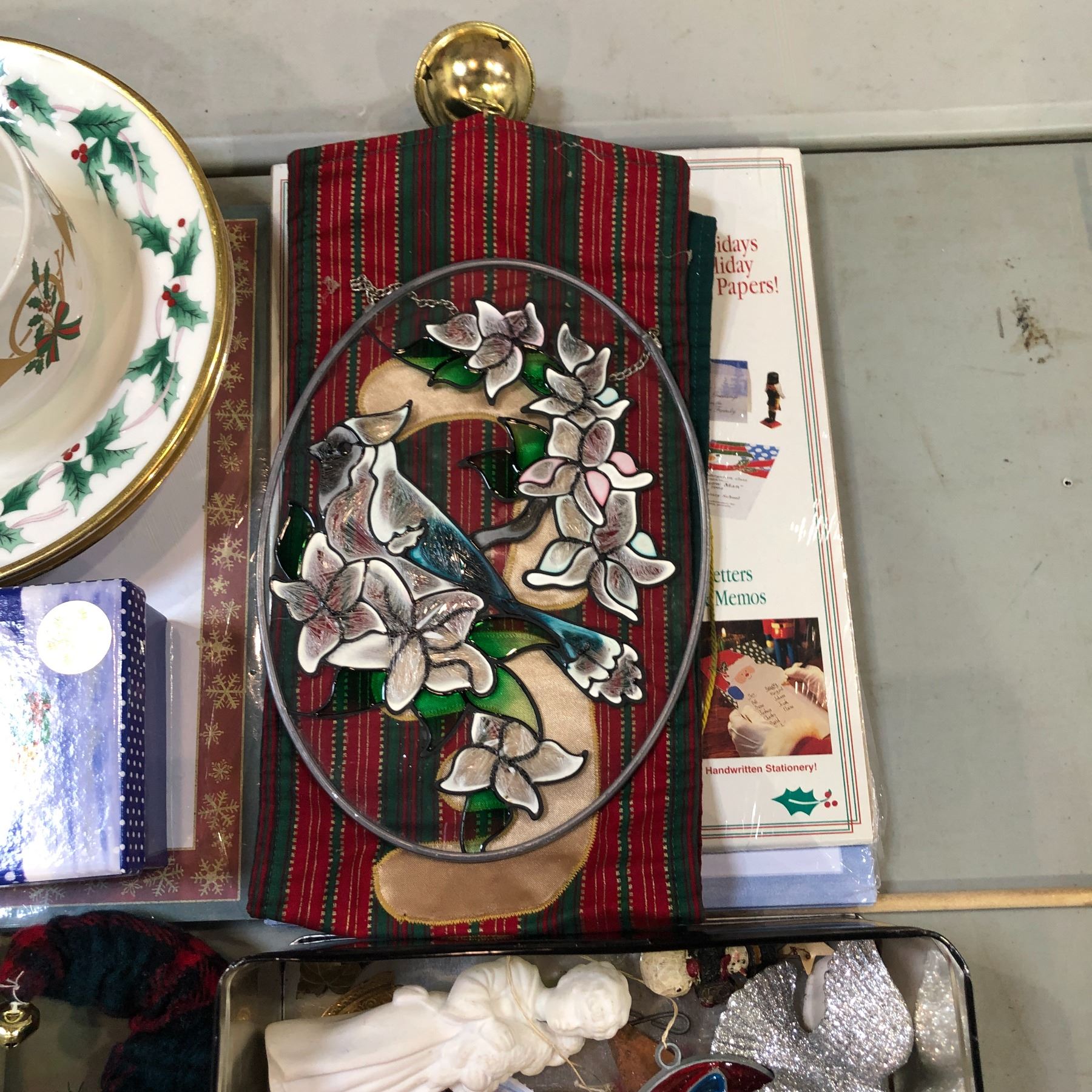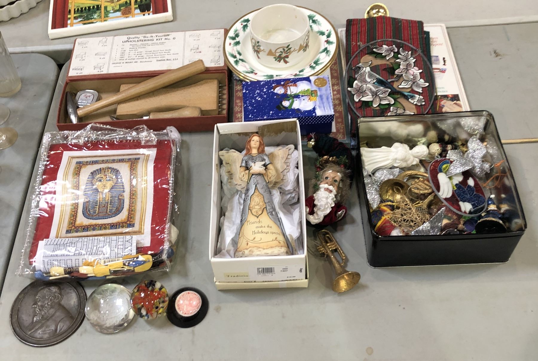 Group of assorted Christmas decor & misc items - includes "Do it Yourself upholstering kit"