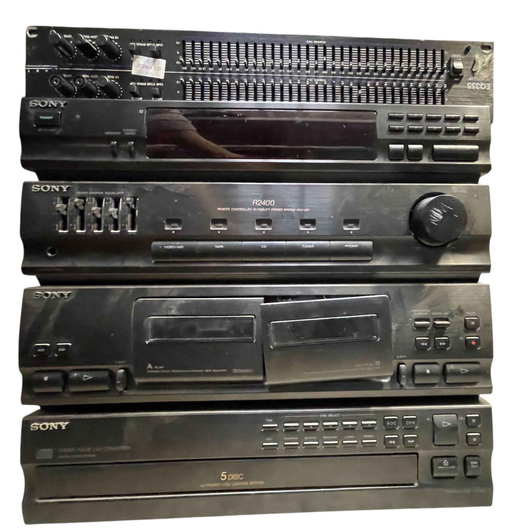 Group of assorted Sony audio systems w/ Alesis MEW 230 dual 1/3 octave EQ unit -