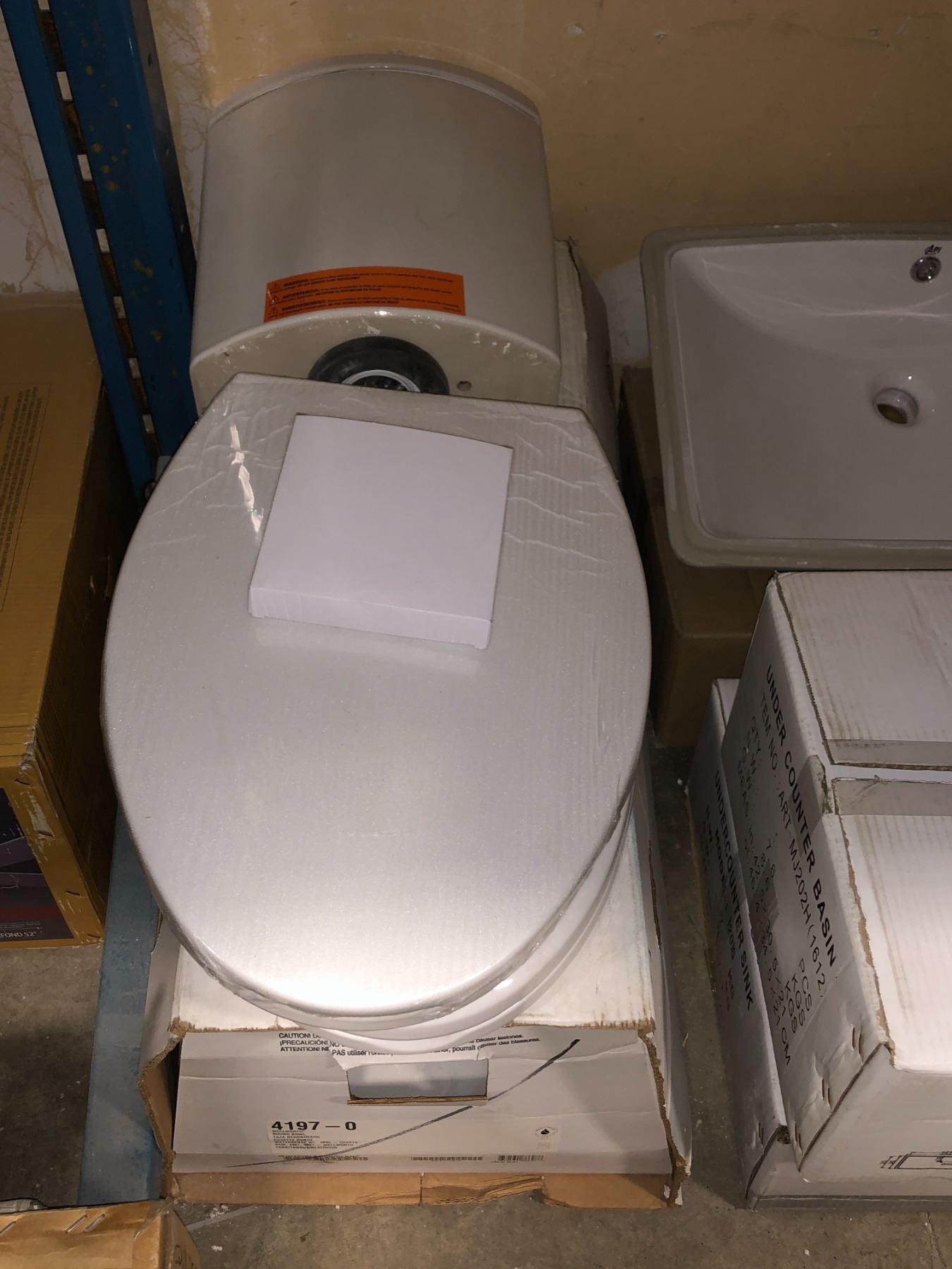 Group of assorted bathroom items - includes toilet seat w/ tank / basins / sinks