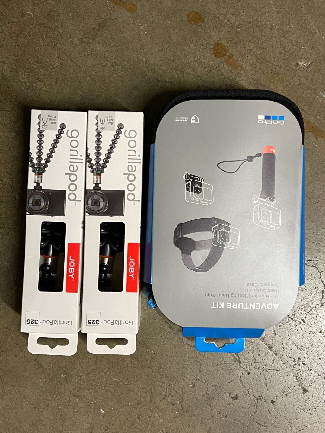 Group of assorted camera gear - Joby Gorilla Pod 325 & GoPro Adventure Kit
