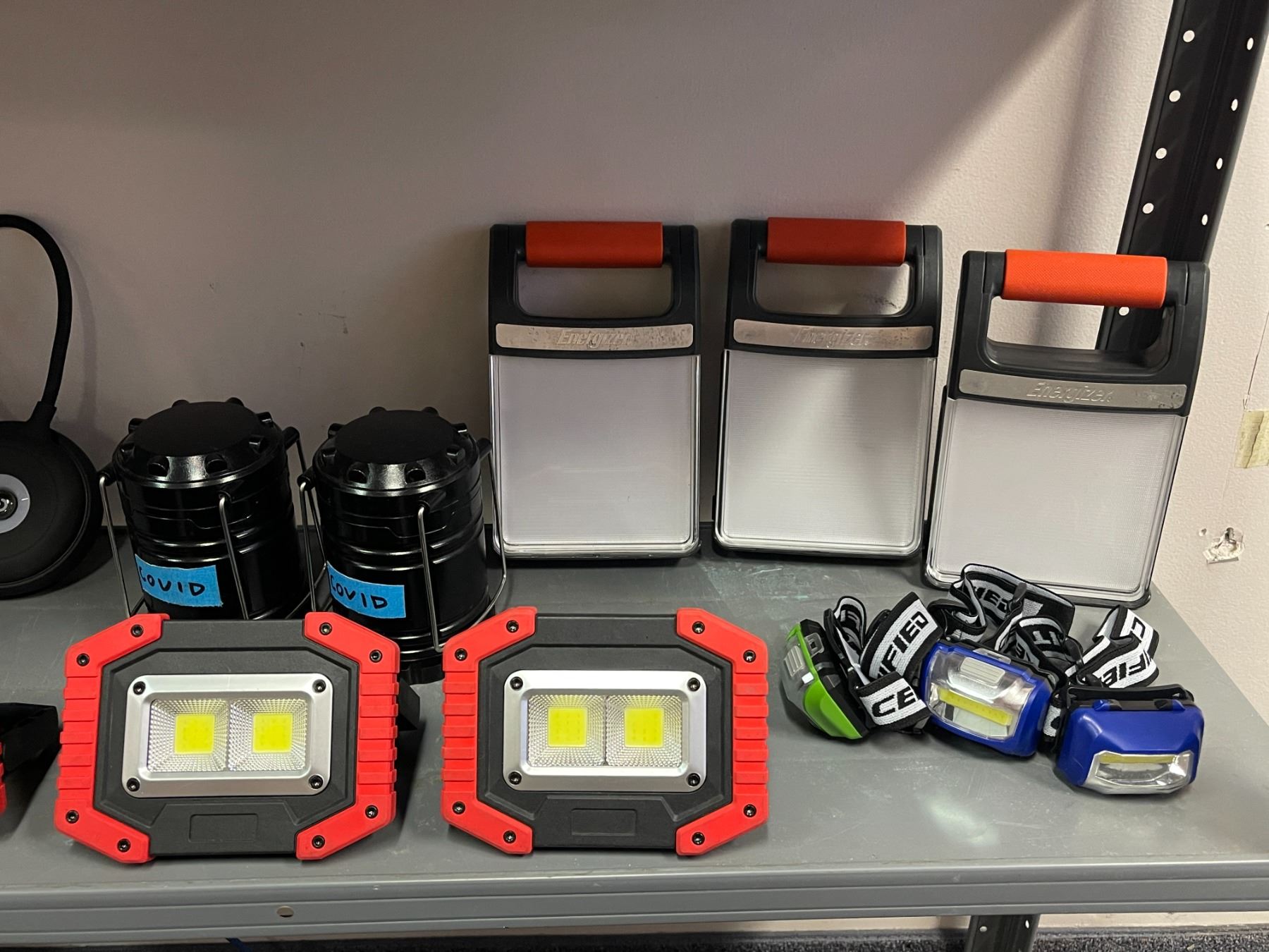 Group of assorted camping lamps/lanterns - includes camping lamps / etekcity camping lanterns / Energizer fusion LED folding lantern / LED head lamps etc - approx 15