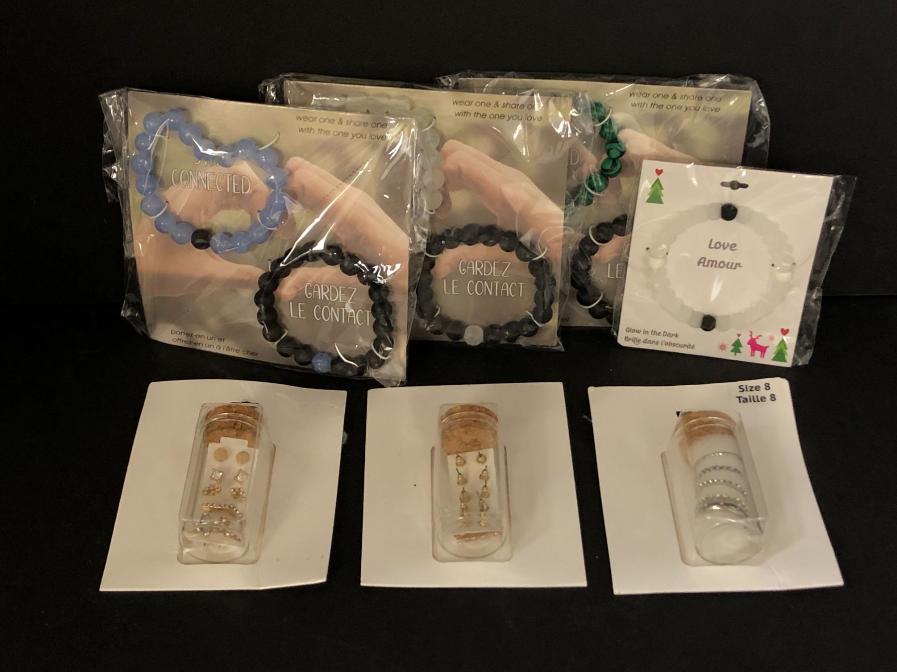 Group of assorted connected bracelets & jewelry - includes rings & earrings
