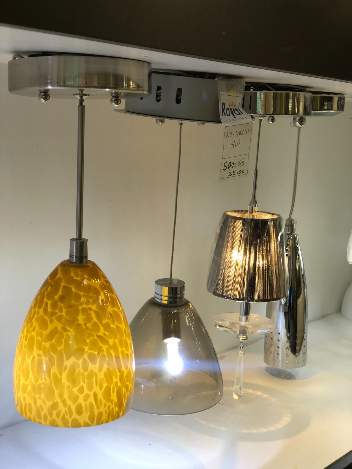 Group of assorted contemporary decorative celling light fixtures - approx. 7p. (bidder is responsible for removal)
